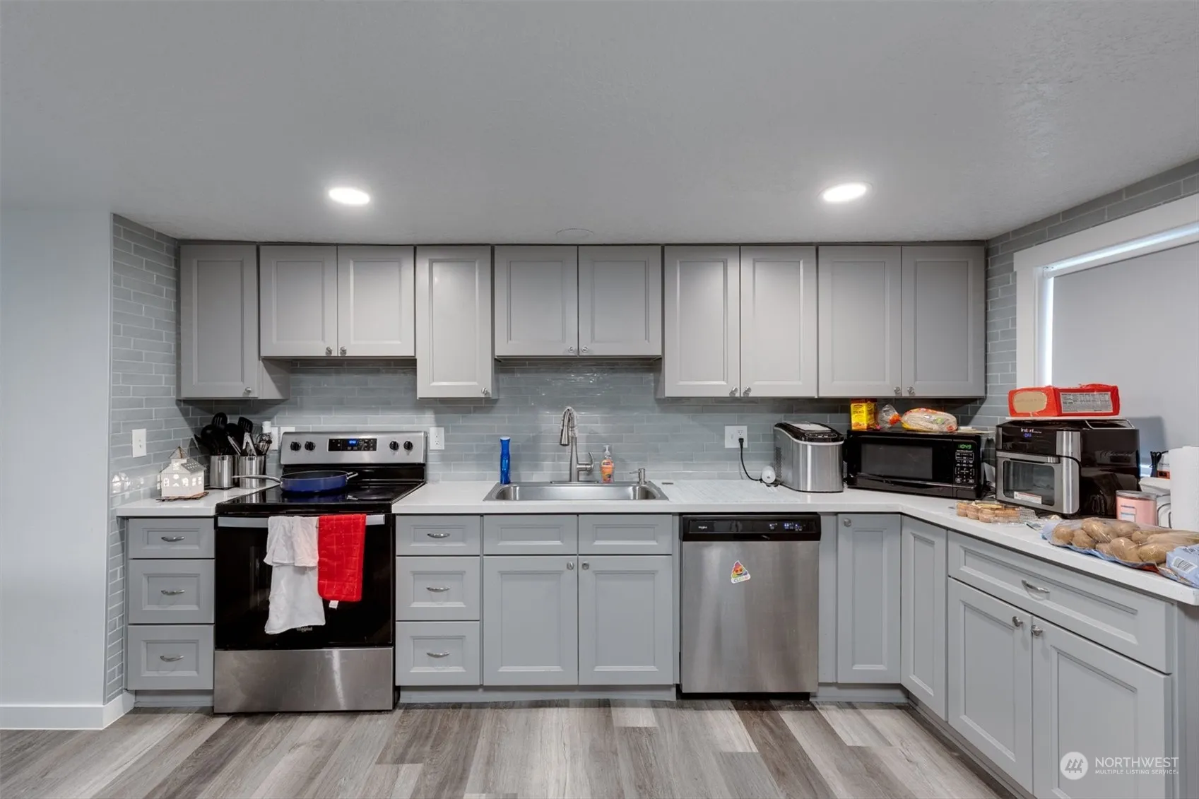 Investment opportunity in great location! Unit B: 3 bedrooms/1.5 bath, stacking w/d, two family rooms, new bathrooms, wrap around deck. Unit A: accessible 1400+ ft sq, 4 bedrooms and 1.75 baths, all NEW kitchen w/ quartz counters & tile backsplash, new finishes, w/d, and walk in closet in large primary w/roll-in bathroom. Situated on an oversized fenced lot, there’s ample space to build a shop, ADU, additional parking or create a large outdoor living space. Additional highlights: Great CAP rate, RV Parking, updated siding & exterior paint, efficient vinyl windows, fresh paint and flooring throughout, 2 electric panels. Market-value rents, this property is a fantastic investment or Multi-Gen. Owner pays utilities.