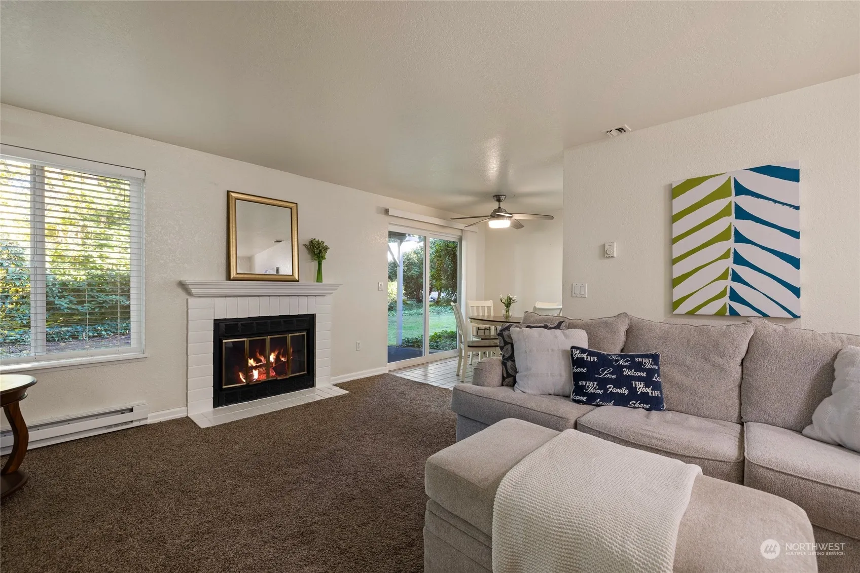 Walk to Chambers Bay Park & Golf Course, this well-maintained condo offers easy access with no stairs & comes w/ a roomy bedroom, sizable bathroom, your very own full size W/D & lots of storage. It features a cozy fireplace in the spacious living area, perfect for those chilly evenings. Move-in ready w/ newer carpet, windows & blinds, kitchen cabinets & floors. Kitchen has granite counters & under-mount sink. Dining area is adjacent to the kitchen & back patio, which provides the perfect setting for meals; entertaining guests becomes a breeze! With no rental cap, this is also an excellent choice for investors. Pre-inspected. Don’t miss out on this fantastic opportunity to own a property in the highly sought-after University Place!