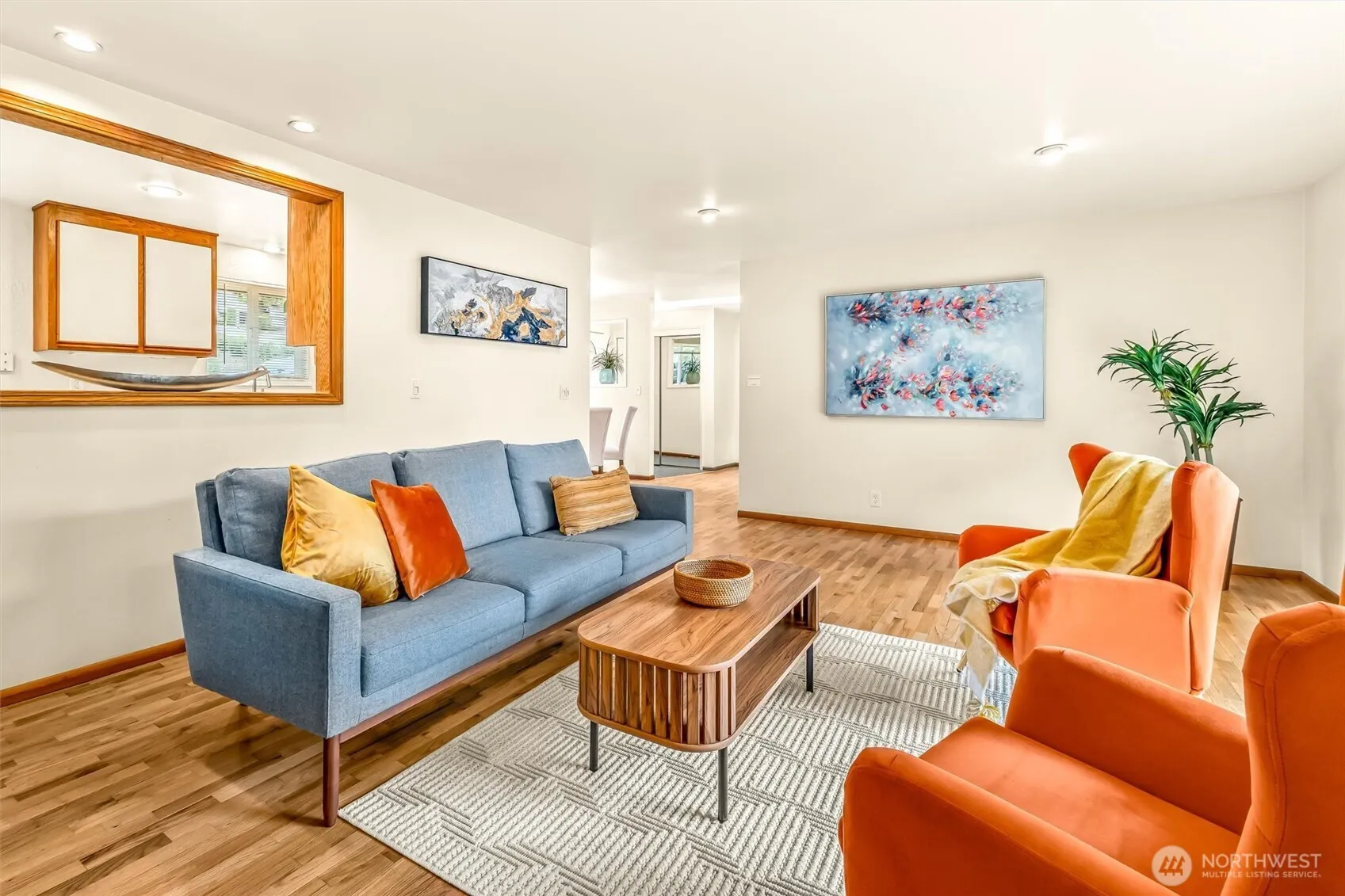 This lovely daylight rambler is pre-inspected and ready to move in. Located on a desirable corner lot with south-facing sun exposure. It features a bright skylight entry and original hardwood floors throughout. The kitchen includes an eating area, and the large living room has a gas fireplace and a view of the spacious backyard and fruit trees. Lower level could be readily converted into a MIL residence and features an expansive recreation room, a three-quarters bathroom. Don’t miss the fourth bedroom (or would you use it as an office?). This comfortable home also includes a spacious double garage and a workspace, along with ample parking in the driveway. The rear deck offers a large entertainment area, a private fully fenced yard.