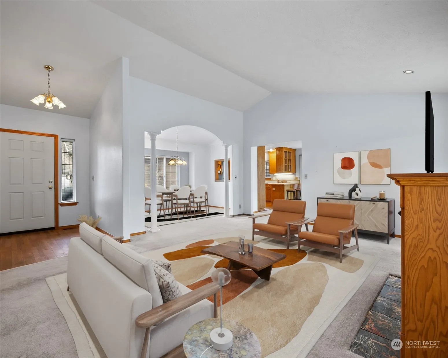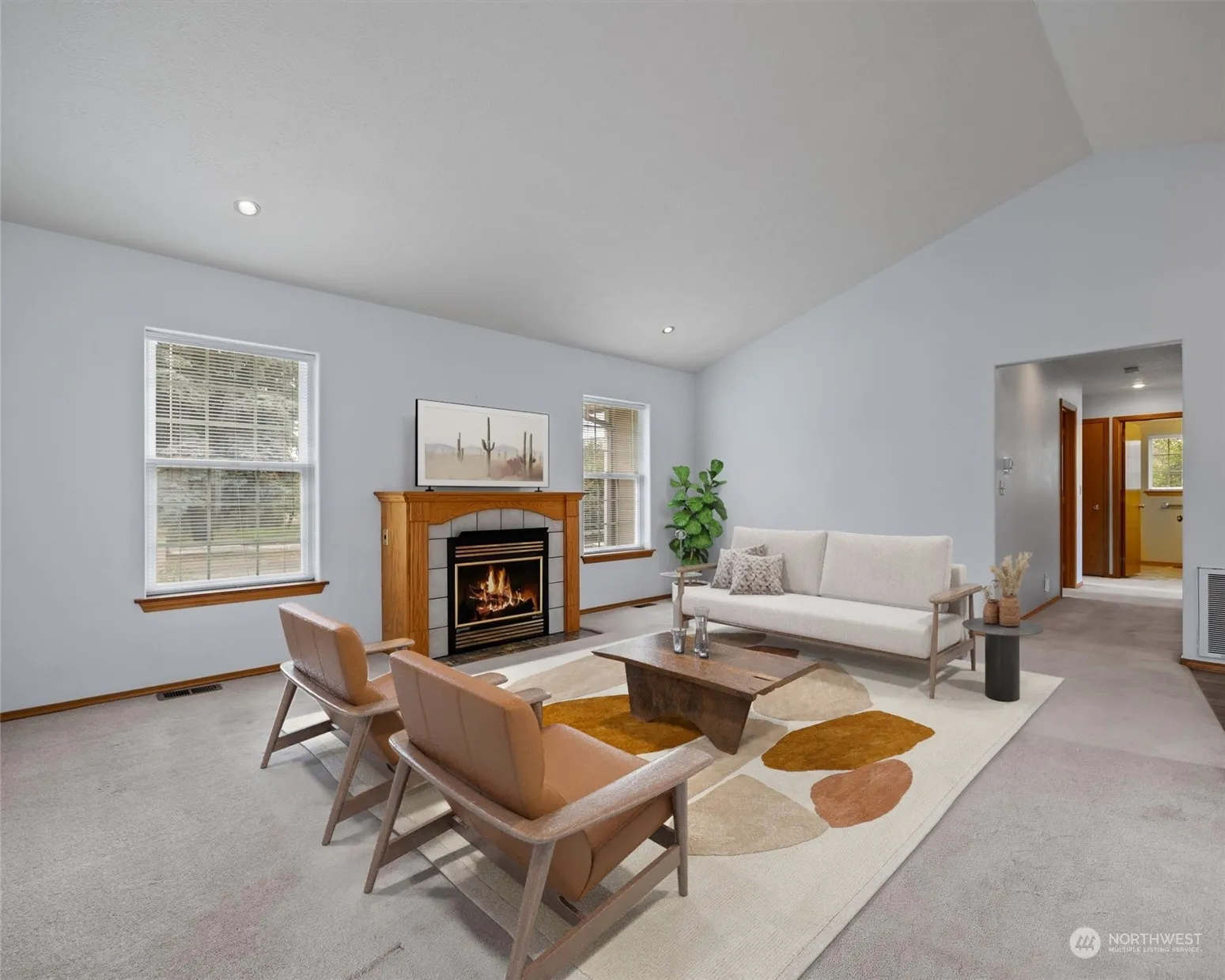 Light & bright single-level home in College Place, boasting stunning soaring ceilings & versatile living spaces. The charming kitchen offers ample counter & cabinet space, & flows into the sunny family room, boasting a bay window. Formal living & dining areas w/ cozy gas fireplace, 3 spacious bedrooms, including the primary suite w/ walk-in closet & 4-piece bath w/ updated tile shower. Large walk-in pantry, laundry w/ storage & utility sink, updated AC unit & gas furnace, new roof w/ transferable warranty! 2-car garage w/ built-in cabinetry & attached workshop. Private low-maintenance backyard complete w/ an oversized covered patio, storage shed, & mature landscaping. Located near Walla Walla University, dining, shops & parks. Welcome home!