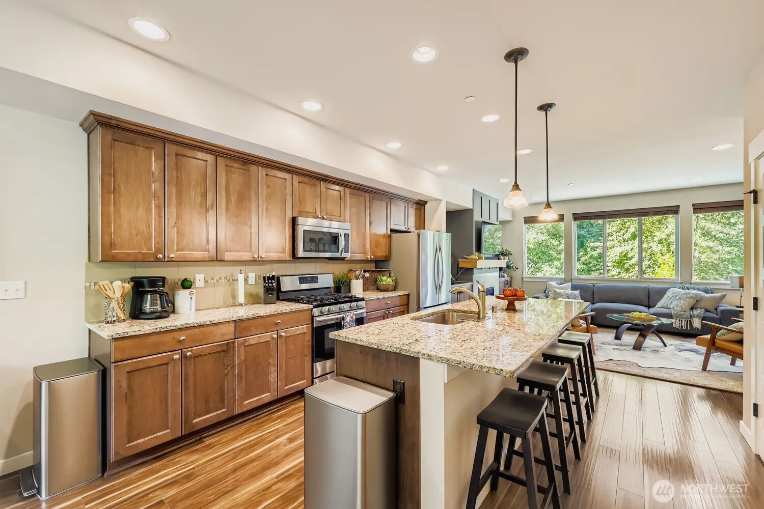 Welcome to this stunning Edmonds townhome! Offering 3 bedrooms, 2.5 baths, and an open-concept main floor perfect for entertaining or relaxing. Enjoy a welcoming front patio, then step inside to a kitchen with an oversized island and abundant seating, flowing into a dining area and cozy living room with a gas fireplace and serene greenbelt views from the living room.. Upstairs, the primary suite boasts a spa-like ensuite and walk-in closet, plus two additional bedrooms, a full bath, and convenient laundry. The lower level includes a 2-car garage with generous storage. Minutes from Meadowdale Beach Park, shopping, and major highways. Your New Home awaits!