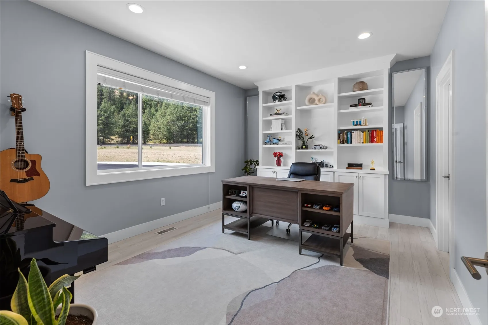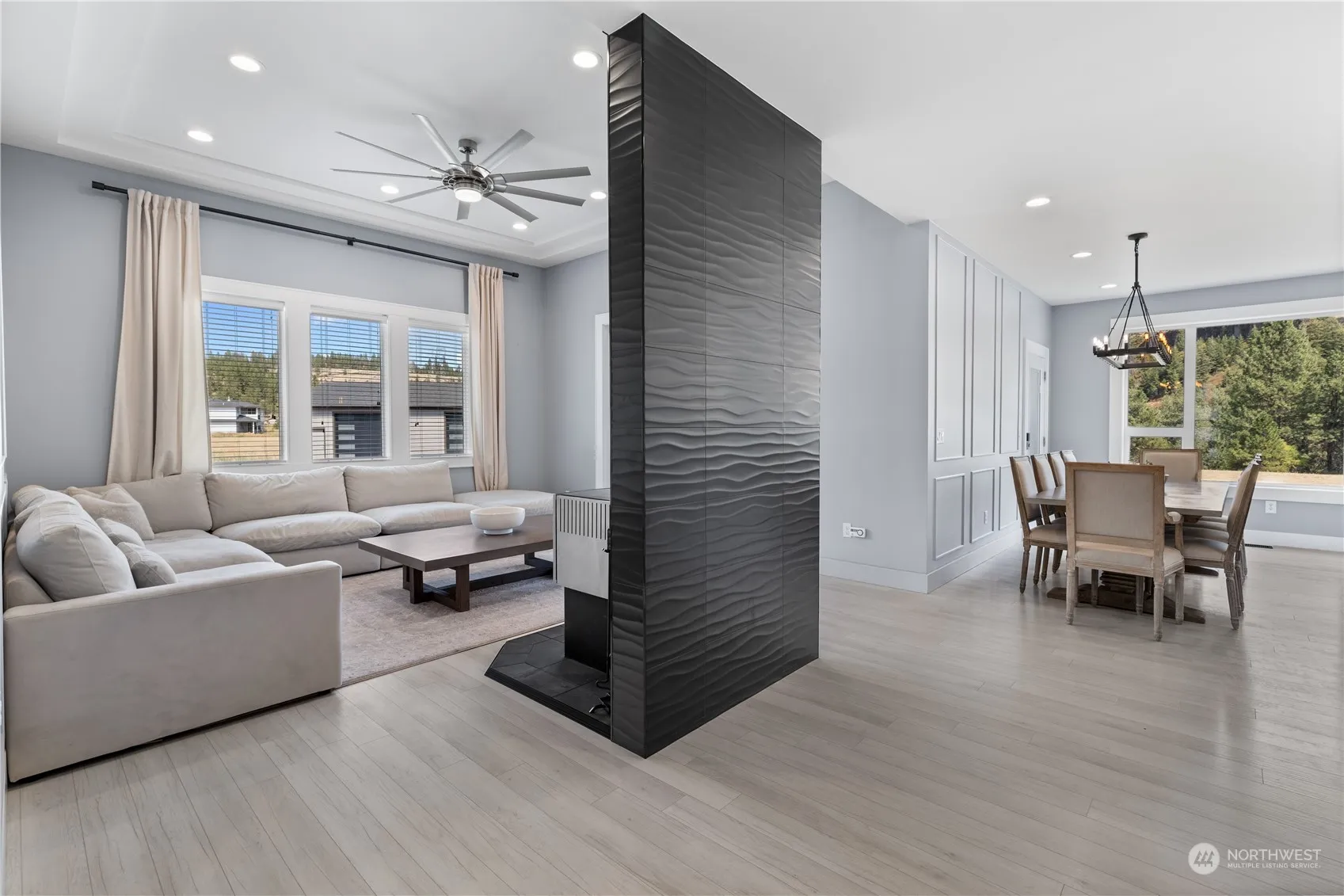 Exquisite Modern Living with Breathtaking Mountain Views. Experience the pinnacle of modern living in this custom-built home, set on 10 pristine acres with sweeping 360° mountain views. This 5-beds, office, 3-baths home features a grand entryway leading to a high-ceiling living room with a cozy wood stove and access to a covered patio, complete with a built-in kitchen and bug-free screening for outdoor enjoyment. The gourmet kitchen is a chef’s dream, boasting top-of-the-line KitchenAid appliances, a double oven, quartz countertops, custom cabinetry, all with stunning views. 2-car garage with built-in storage, a 1,550 sq. ft. premium shop, camera security system, heated bathroom floors, designer lighting, central vacuum system, and more.