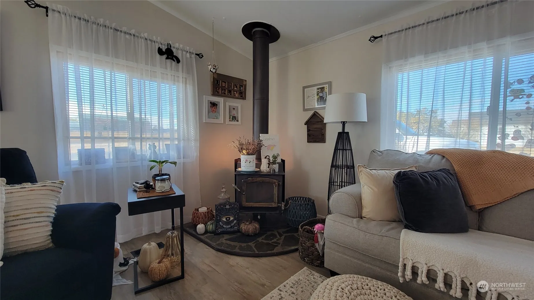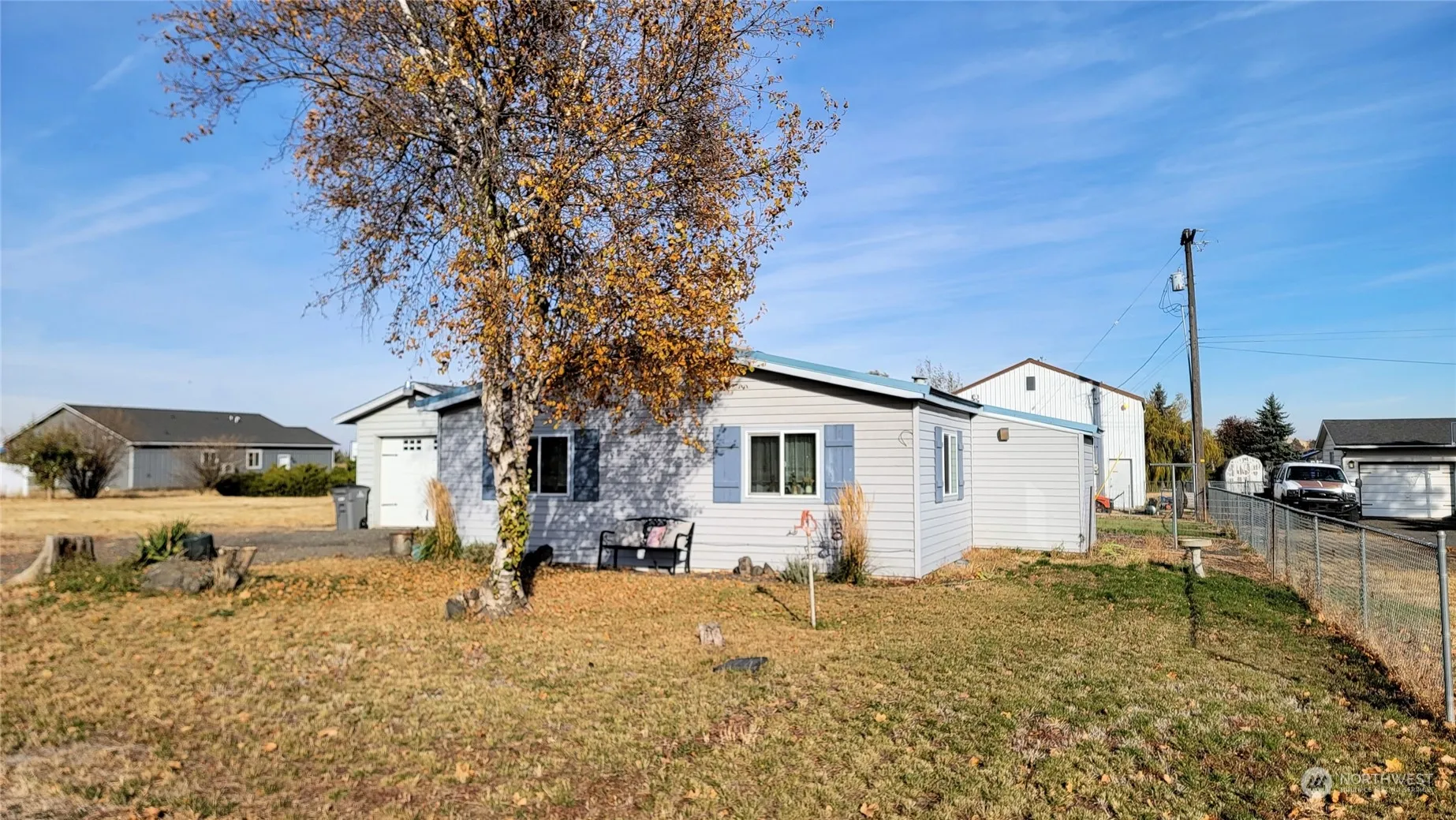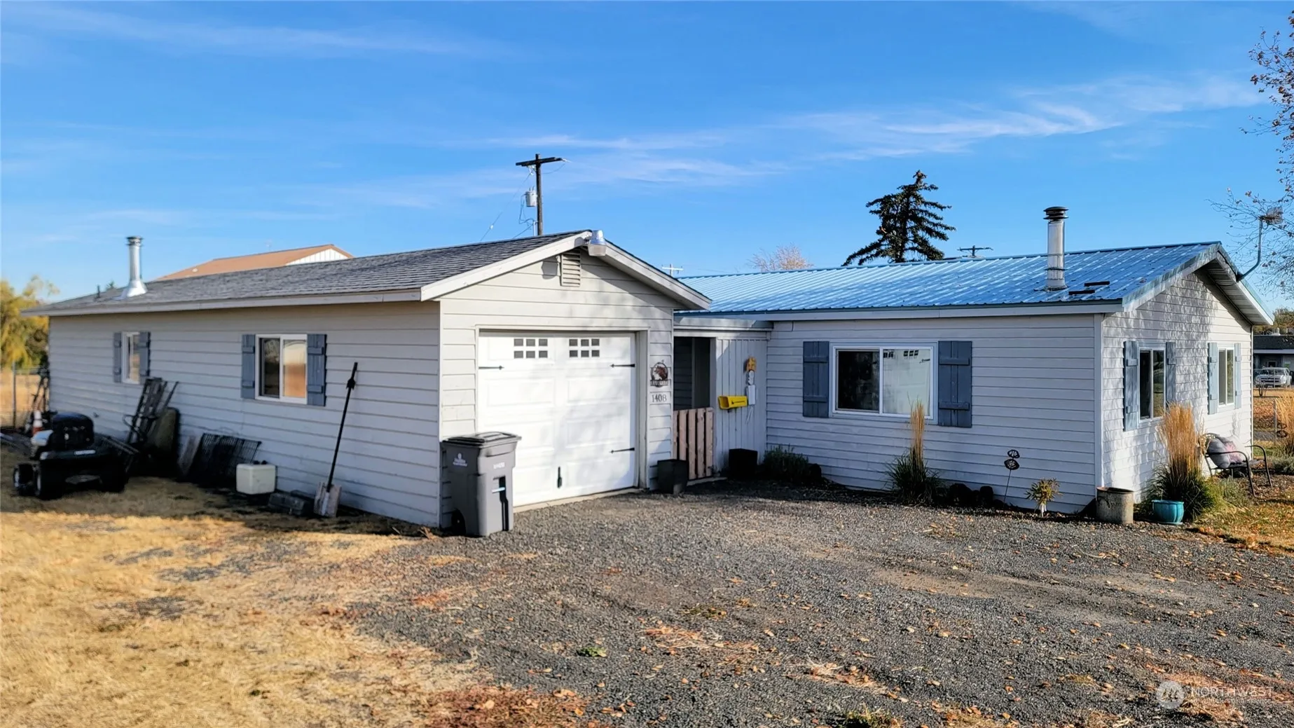 Beautiful 2 bedroom, 1 bathroom home on large corner lot! This home features many updates throughout including beautiful flooring, paint, fixtures & more! Enter into the cozy living room with wood stove & ceiling fan. The kitchen has all updated appliances, deep sink, lots of cabinet space, cozy eating area and a walk in pantry. The bedrooms are a good size & the bathroom was completely remodeled in ’22. A metal roof for lifetime protection, gas heat & hot water, vinyl windows & 6 inch exterior walls. The garage is 12X24 & there is a 12X19 heated workshop & a 12X6 shed. The back yard is fenced, has a built in fire-pit & nice gazebo. The extra lot has plenty of room to build a shop, storage or just enjoy your wonderful yard!