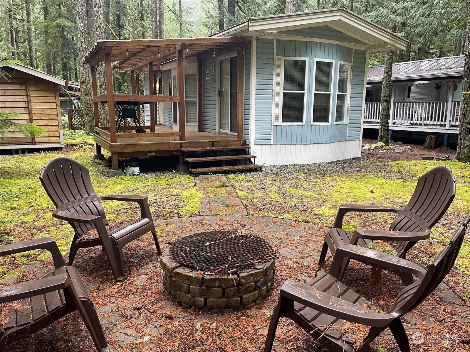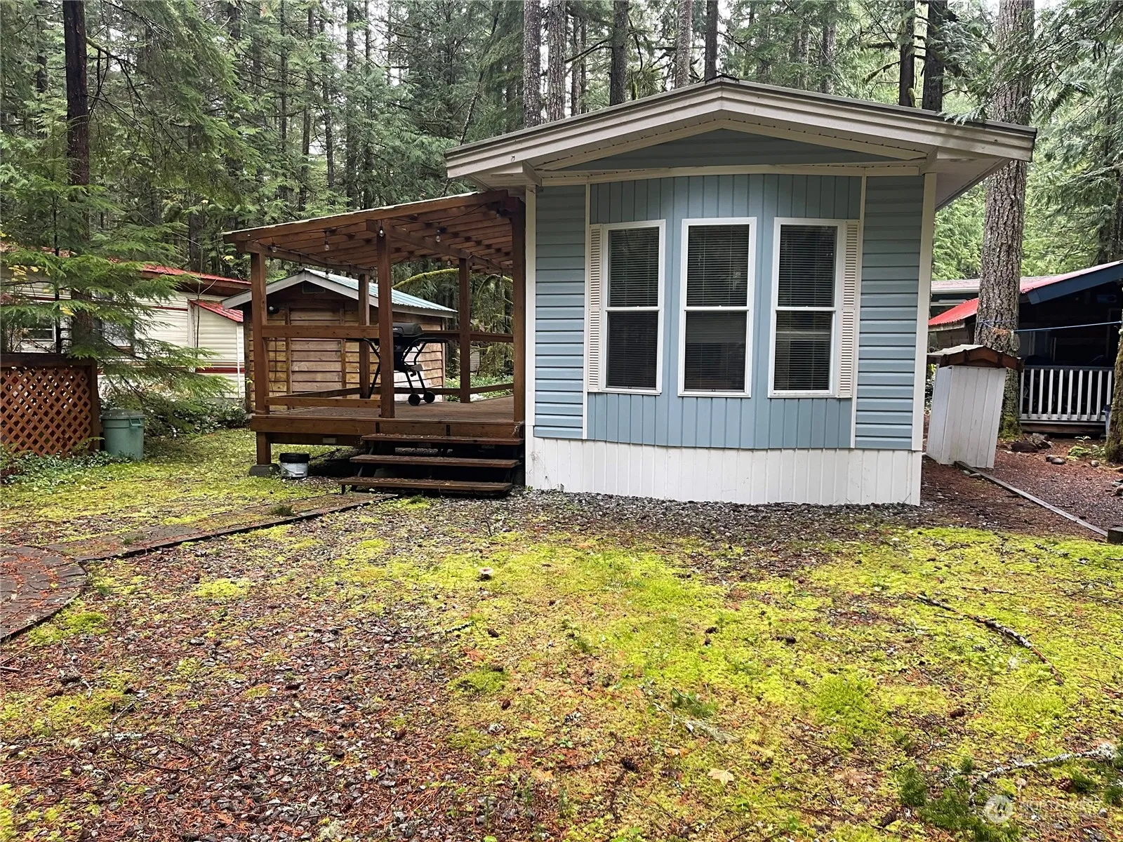 Incredible opportunity to buy a park model home at The Glen at Maple Falls! Health issues force sale. This ’94 Wedgewood Park park model is in good shape. When you step in the back door, you have a private sunken primary bedroom. Above the bedroom is a loft for 2 to 4 people. Then, there is another door that has 2 private bunks! Full size bath, and plenty of room in the kitchen, with a dining area. Large living room area. This also has a covered deck for barbequing. Firepit out front ready for entertaining! Also has storage shed. Everything there stays! The Glen has 2 pools (1 open year-round) hot tub, sauna, tennis & pickleball courts, river access, 24/7 security, laundry & shower facilities, trails, and so much more. Minutes to Mt. Baker!