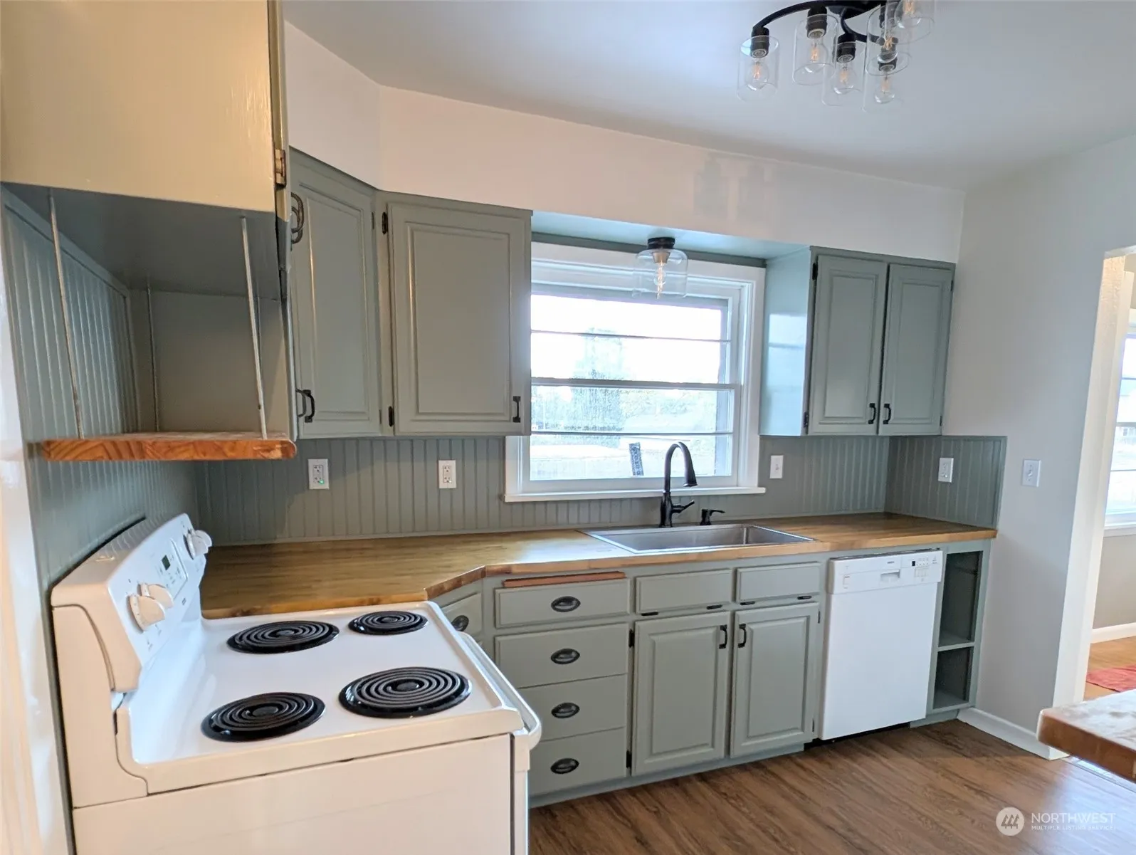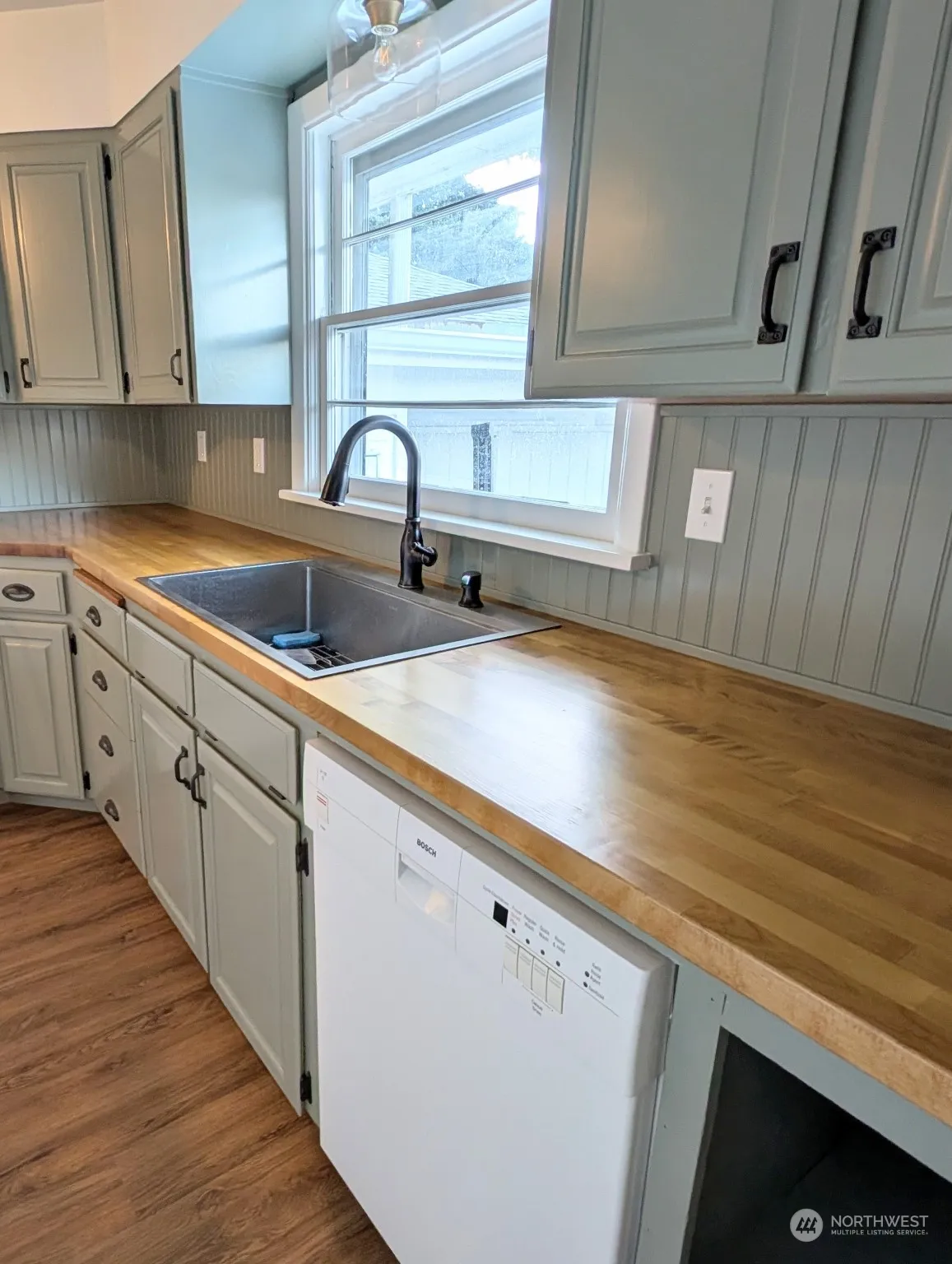 4 bed, 2 bath, 2 car garage home boasts privacy, room to garden and well water. There is no traffic coming down to or past the house, which is fenced on all 4 sides. Flower beds line the fence and surround the house, with room to garden in the back. The main level has freshly painted kitchen cabinets and new countertops, new paint thru most of the upstairs and the bathroom has been refreshed. New flooring has been installed in the kitchen and dining room. The original 1950’s built-ins add charm and storage to the main level. Lower level has 2 legal bedrooms and excellent storage areas in a large extended laundry room. If you are looking for a home with privacy, a well, room to garden and a garage, this is the house for you!