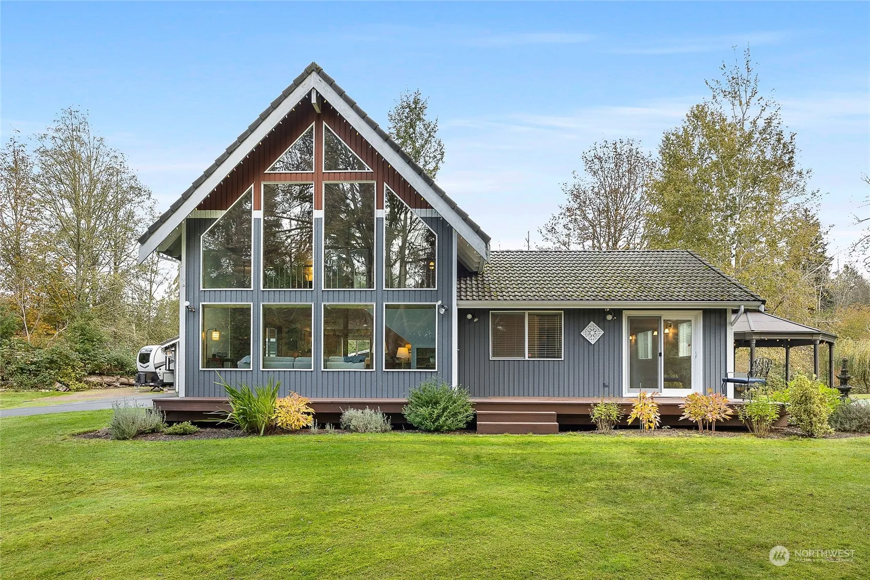Move-in ready 3-bedroom, 2-bath custom home set on 2.50+ secluded acres with a pickleball court! Airy A-frame w/huge windows that let in tons of natural light. Newly remodeled kitchen features quartz countertops, tile backsplash, updated cabinetry, and tile floors. Both bathrooms have been refreshed with stone countertops and modern finishes. Upstairs, there’s a versatile loft/office space and the primary bdrm with an ensuite bath. This energy-efficient home is built for comfort with a forced air heat pump (w/AC), newer windows & doors throughout, tile roof, and a freestanding wood stove. The detached garage has workshop & storage space, plus a 2-car carport. Greenhouse and veg garden. Two large decks and a covered patio for entertaining