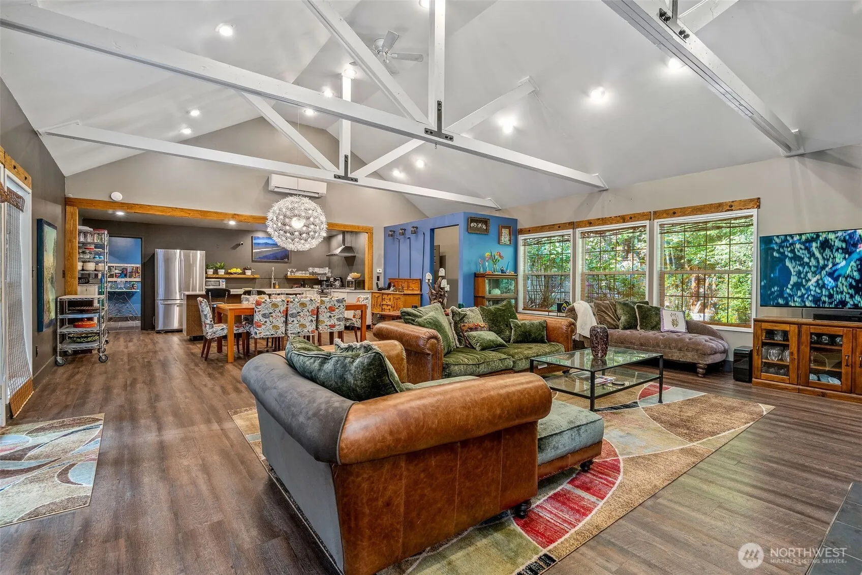 Tucked among towering cedars & firs, this Whidbey Island retreat sits on nearly 5 acres. The charming home offers single level living w/ a spacious layout designed for relaxing & entertaining. Main living area blends kitchen, dining, & family room w/ French doors leading to the patio to bring the outside in. Expansive primary w/ ensuite & private outdoor access, & an additional bed/bath in the main house. Separate guest cottage has its own bed & bath for additional living space or privacy for guests. Lush gardens & firepits create the perfect backdrop for outdoor gatherings. Spacious shop & detached garage offer abundant storage & hobby space. Just 9 minutes to ferry & close to island amenities, blending comfort, charm & convenience.