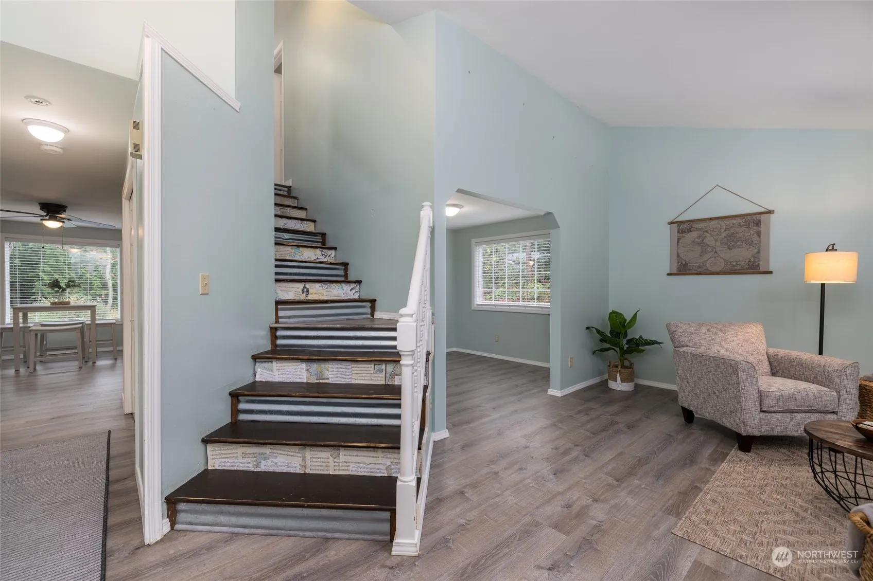 Opportunity knocks! Spacious 3 bed/2.5 bath home on a large, level lot, with 2 car attached garage. Located in the Shelter Bay Community just across the channel from the charming town of La Conner, packed with shops and restaurants. Shelter Bay amenities include a seasonal pool, clubhouse, par 3 golf course, pickleball courts, marina, private beaches, and more. Newer vinyl plank flooring throughout. Main floor has two living areas, open kitchen, dining room. Upstairs are the primary suite w/walk-in closet & private bath, 2 guest rooms, full bath, and extra finished room/office/reading nook area. Lovely level yard, fenced raised bed area, storage shed.