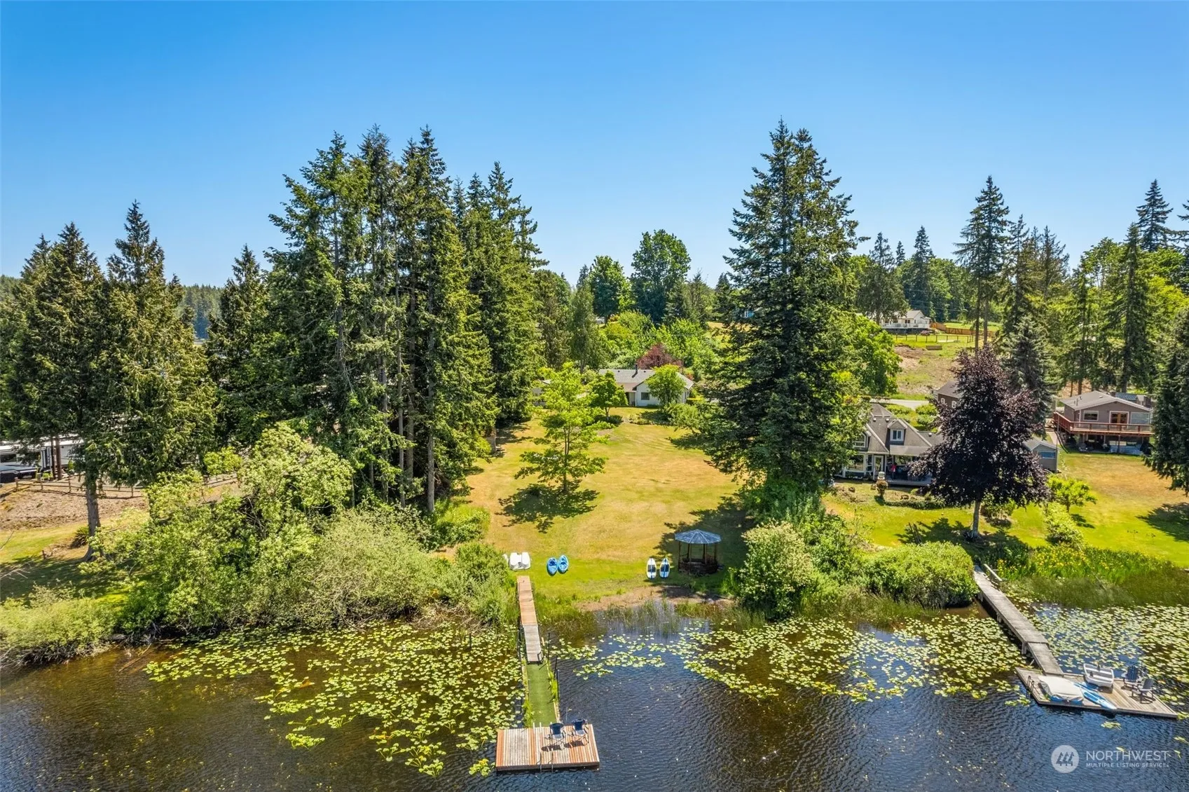 Price drop! Charming remodeled lakehouse on quiet Lake Martha, great for swimming (no gas motors), and year-round fishing from your own private dock. This 1915 property is set on a huge double lot w/ mature landscaping, offering a serene backyard oasis where you can relax, watch eagles, bunnies, & ducks. Enjoy beautiful sunsets on your covered patio or gather around the firepit. The inside has been extensively remodeled: new plumbing, electrical, HVAC, septic, flooring, high-speed internet, new insulation, and a gorgeous kitchen. Detached 2-car garage with EV charger, and there’s also a detached Shop. Enjoy Locals Coffee & Paddle Pub down the street. Easy I-5 access, Lakewood shops – Target /Costco. Start making memories on the lake!