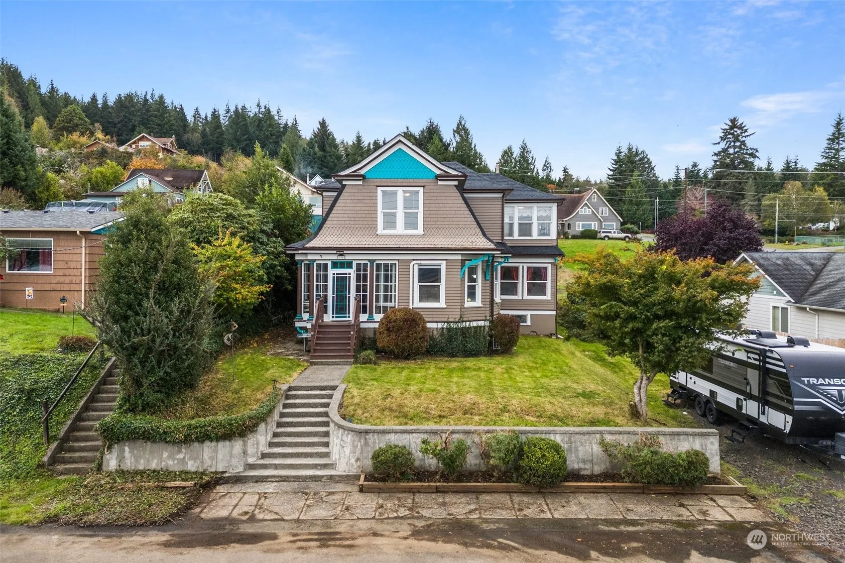 This charming home offers stunning river views and combines original craftsmanship with modern amenities. Upon entering, you’re greeted by a grand entryway that flows into spacious living areas filled with natural light. The cozy warmth of a wood stove complements the energy efficiency of the ductless heat pump system. A large formal dining room is perfect for gatherings, while the primary suite provides a peaceful retreat. The covered sun porch offers a serene space to enjoy the outdoors year-round. Additional features include a detached garage with an unfinished basement for extra storage or future projects. Plenty of storage throughout ensures functionality without sacrificing style.