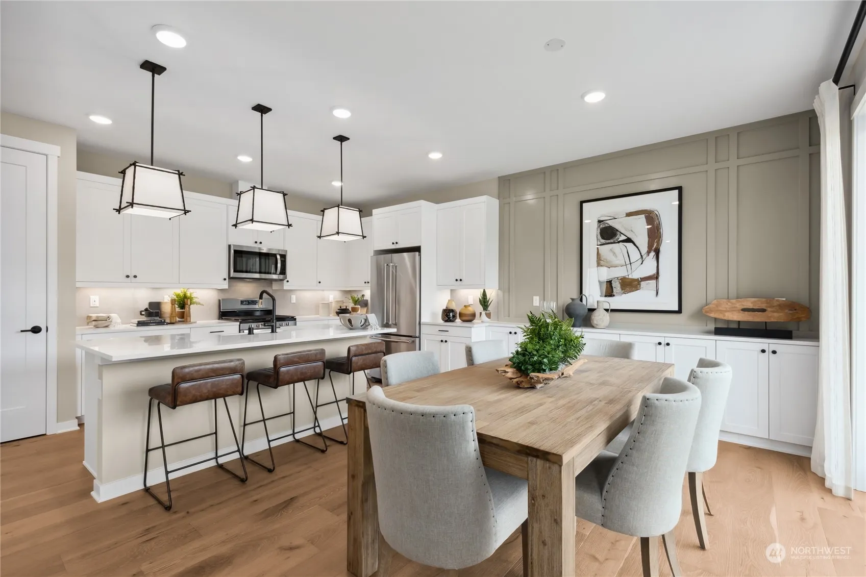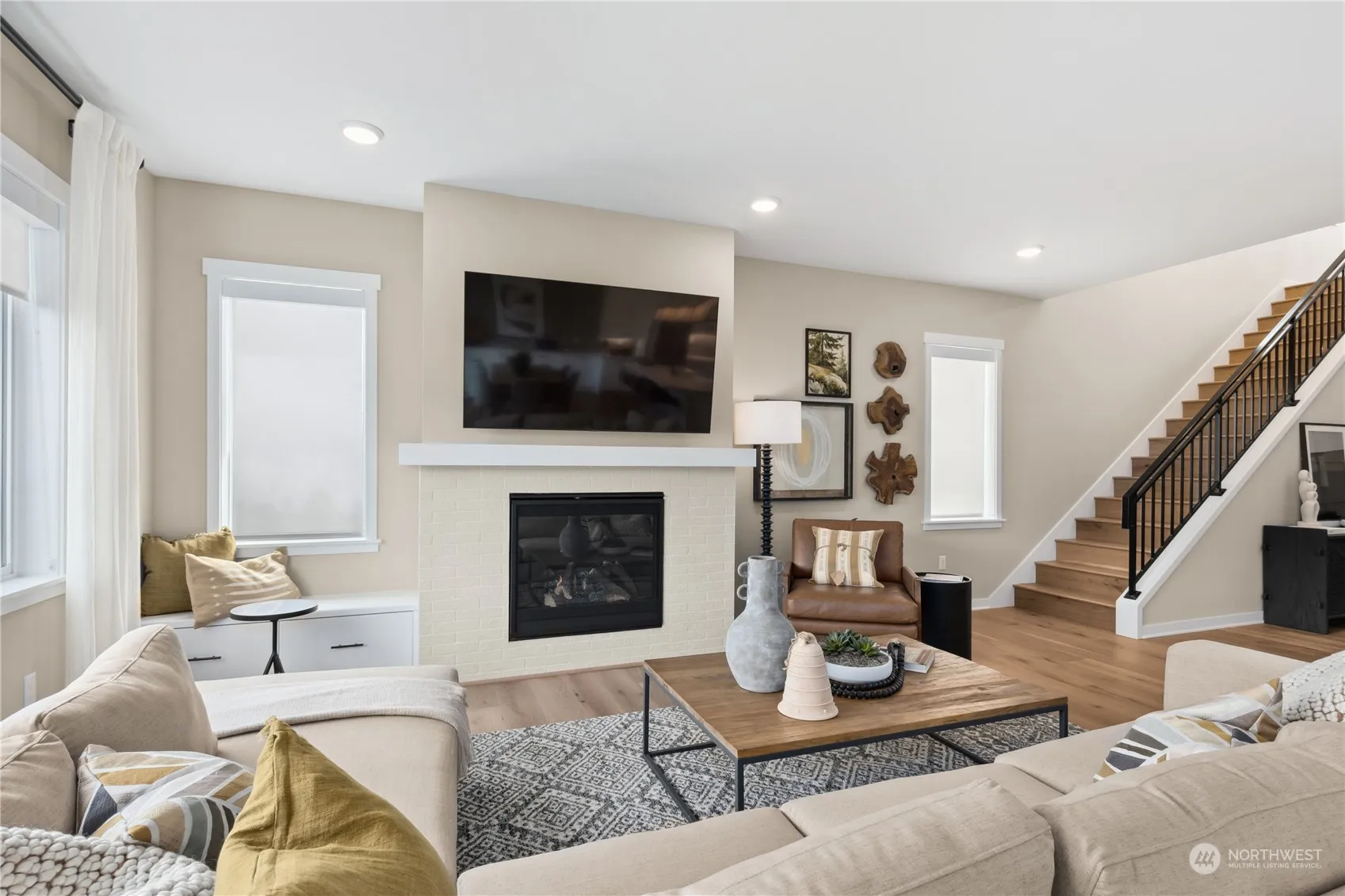 Stunning MODEL HOME on fenced corner lot! Open-concept main floor features a small office space & elegant 9′ ceilings, leading to a striking black metal rail staircase with 17′ ceilings. Spacious layout includes three bedrooms, & versatile loft. Primary suite boasts a generous walk-in closet, while the kitchen showcases quartz countertops & soft-close cabinets. Engineered hardwood flooring throughout, with plush carpeting in the bedrooms. This smart home is equipped with EV charger, smart switches, Ring doorbell, and Eero system, with gorgeous designer lighting throughout. All appliances included, making this home move-in ready! Don’t miss out!*Broker must accompany & personally register buyer at first visit* Lock Box on front door