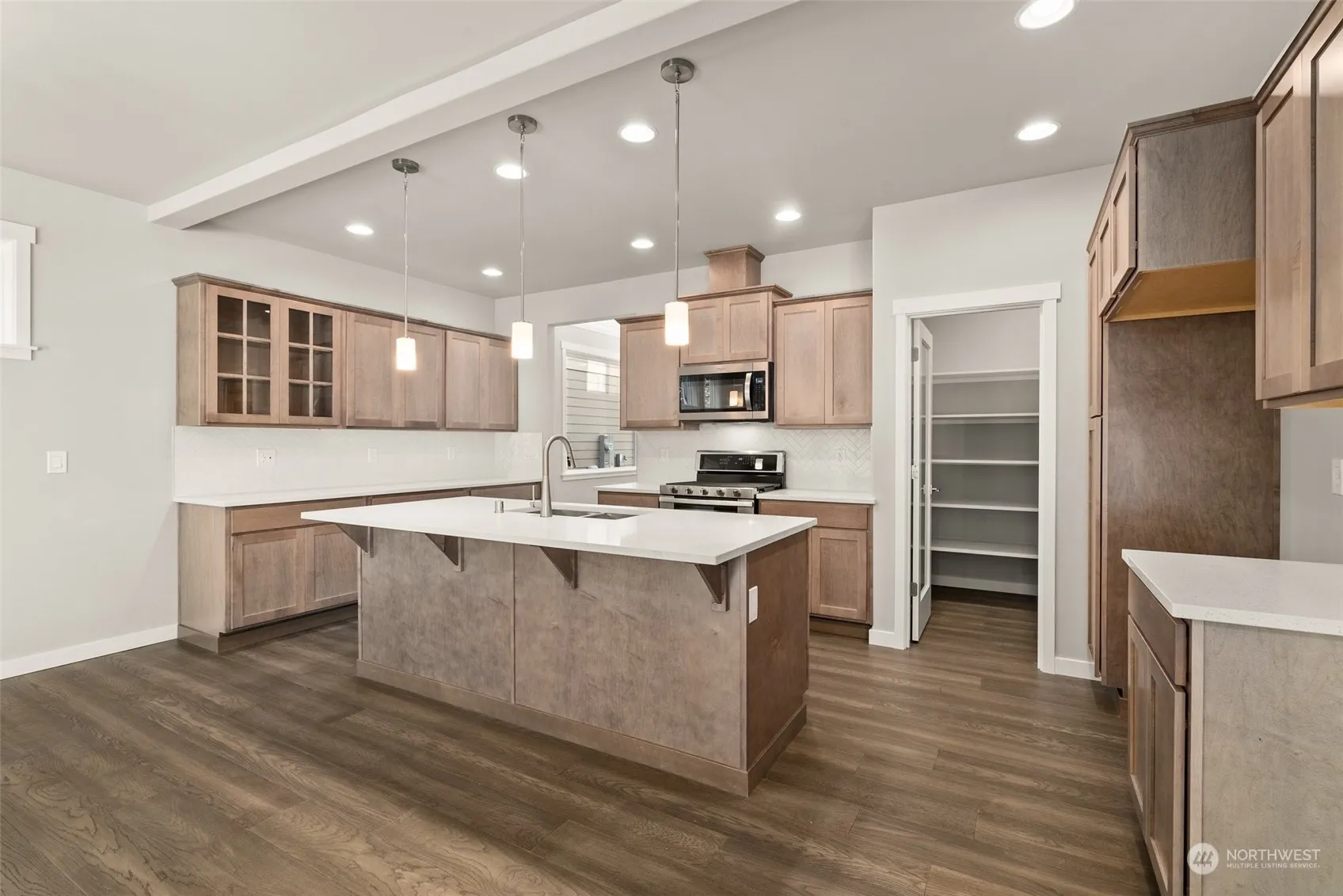 Discover luxury and modern living in this stunning Skyview Estates home, by Rob Rice Homes. The kitchen is a chef’s dream with elegant “Shadow” Maple cabinets, sleek quartz countertops, a full tile backsplash, a gas stove with double ovens, and a spacious walk-in pantry. Gorgeous hardwood floors extend through the entry, kitchen, dining, and living area, creating a warm and inviting ambiance. This versatile floor plan includes a main floor den and a large upstairs bonus room, offering endless possibilities. Outside enjoy the covered patio, privacy fenced backyard, and professional landscaping. Energy-efficient features: solar panels, a heat pump, and a hybrid electric water heater. Conveniently located near I-5, Costco, and local schools.