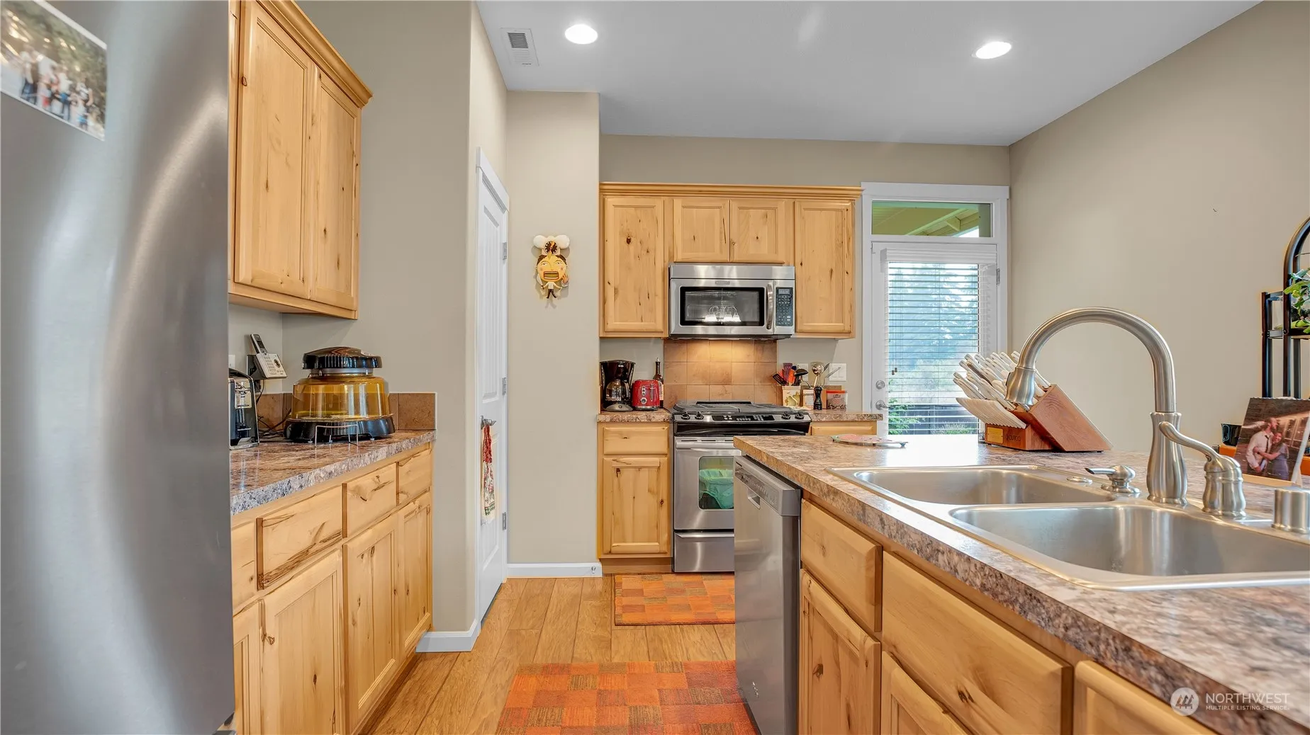 Beautiful one level ranch style home in a prime area! Close to shopping and walking trails right out of your back door. Open modern kitchen with lots of counter space and beautiful cabinets. Check out the great acoustics in the bonus room, all appliances stay. Enjoy the beautiful mature landscaping and hummingbirds on your covered patio. This is a one of a kind house! HOA takes care of the common areas and front lawns.