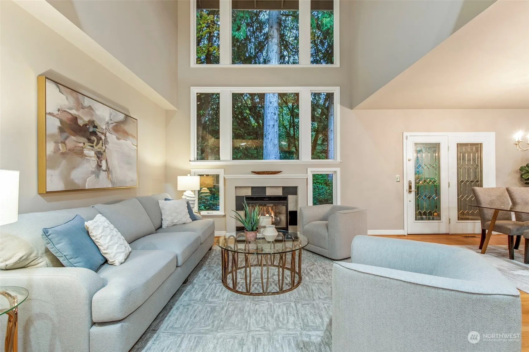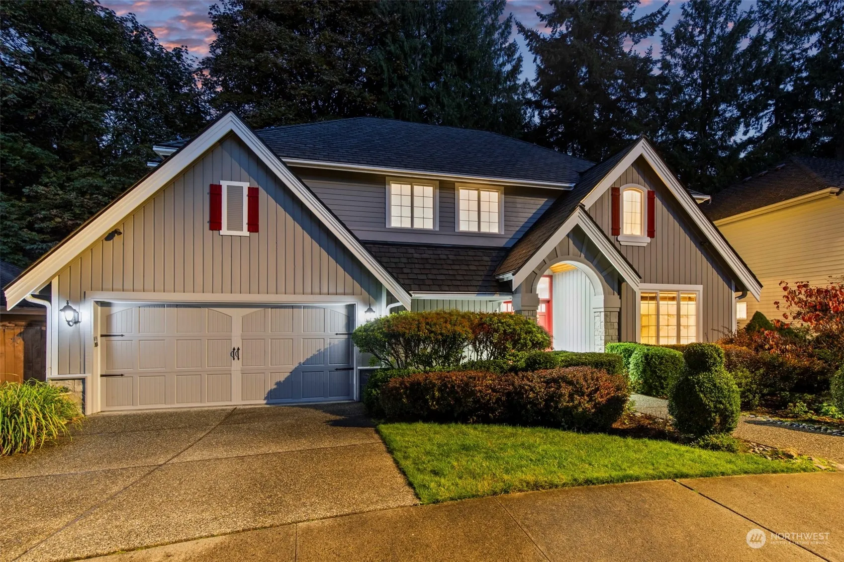 Sought after Buchan resale in Winslow. Quality features & thoughtful design incl dbl door front entry, newly refinished HW flrs, French doors to den, impressive cathedral ceilings w/ floor to ceiling windows, great rm concept w/ gas FP, formal dining rm adjacent to open kitchen w/ granite counters, plenty of counter & cabinet space + pantry. Lg laundry/mud rm w/ built in cabinets. Primary suite w/ updated ensuite 5-piece bath incl double vanity, soaking tub, custom glass shower enclosure & walk-in closet. 2 add’l bdrms upstairs, one w/ walk-in closet. Oversized garage w/ workshop space. Heat pump. Entertainment sized patio, low maintenance mature landscape, backs to greenbelt. Community park & walking trails. Mins to TownCenter. Must See!