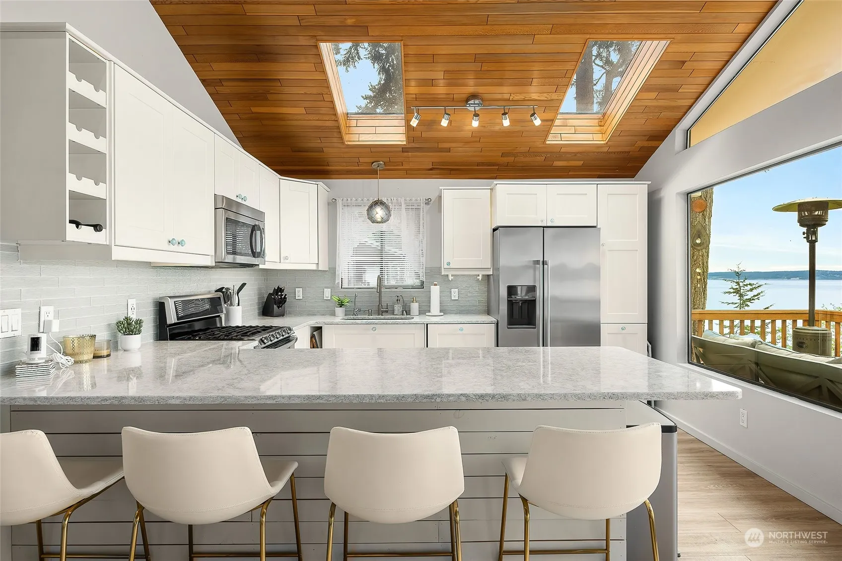Discover the essence of waterfront living in this stunning 2-level, 1664 SqFt home nestled on 2.76 acres. Perched on a high bank, soak in panoramic views of the Cascade Mountains and Camano Island from every angle. With 60 feet of prime high bank waterfront, this sanctuary offers a seamless blend of modern comfort and natural beauty, inviting you to indulge in a lifestyle of serenity and sophistication. Welcome home to unparalleled vistas and coastal charm. Step inside this wonderful home and let the natural sunlight and breathtaking views engulf you in the peace and tranquility of this residence. COME MAKE YOUR ISLAND DREAM COME TRUE.