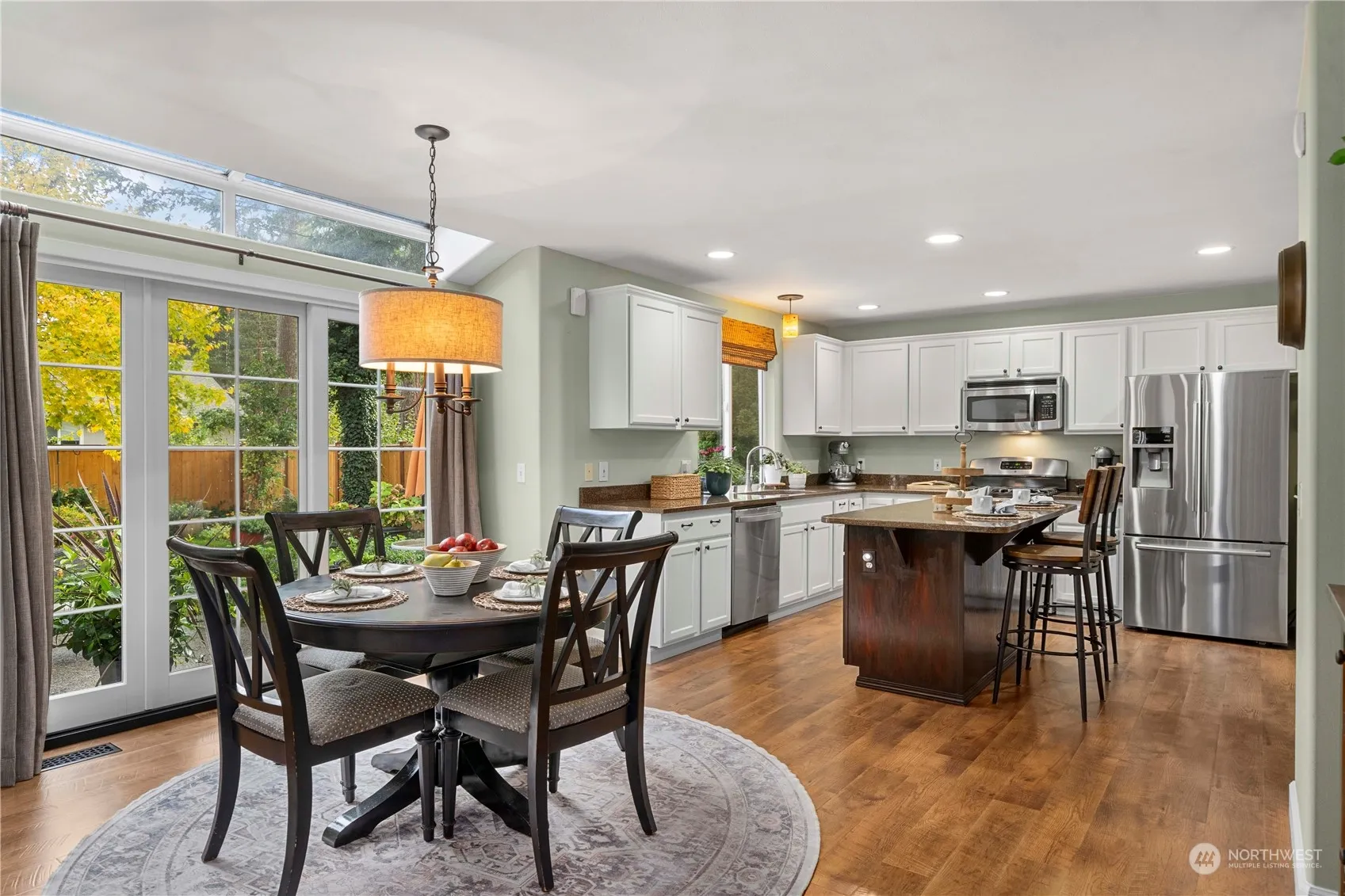 Welcome to Valley Green, a picturesque community in North Maple Valley with mature landscaping, trails, and parks just minutes from shopping and HWY access. This impeccably maintained home is move-in ready and full of recent upgrades. In 2022, the roof, gutters, and furnace were replaced, while beautiful new patio doors were installed in 2023, opening to a gardener’s oasis with a spacious entertainment patio. Beautiful great room with open kitchen featuring white and wood cabinetry & quartz counters. Enjoy the newer laminate flooring & the carpet is just a year old. The private backyard offers a newer sprinkler system, fencing, and plenty of space to enjoy. Located in the highly desirable Tahoma School District, this home is a true gem!