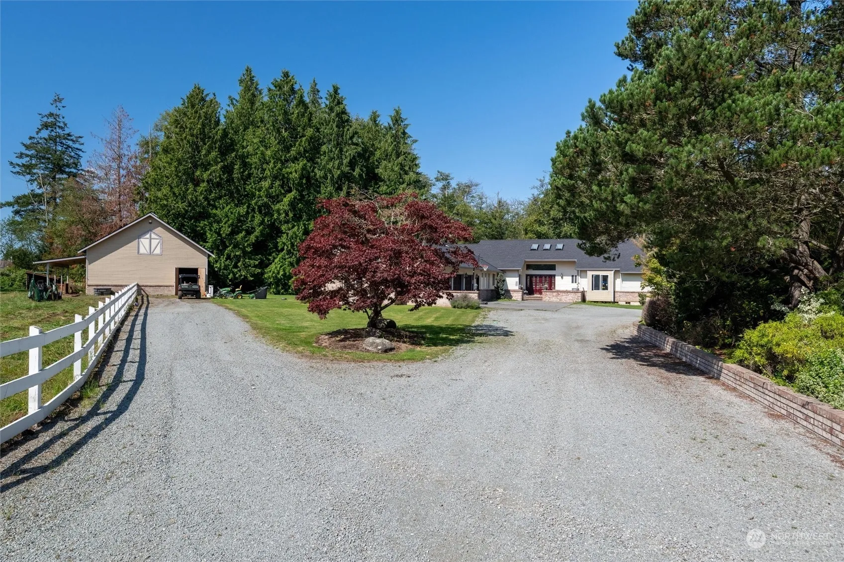 Wildlife abounds in this private 10ac Bayview estate featuring a one-level 3 bed main home w/ oversized garage, 4 bay shop w/ indoor RV parking & 2 bed 1 bath apartment above, 3-stall barn w/ large capacity hay loft & elevator, horse/animal pasture, cleared riding trails through the back acreage, & a 4mil gal pond w/ its own dock, waterfall & island. Sturdy wrought iron gate out front & surrounded by trees for ultimate privacy, this property is perfect for multi-generational living or as a hobby farm. This one-owner home was engineered to stand the test of time, w/ no expenses spared on construction & maintenance. Watch eagles, herons, hawks, & more from your back deck overlooking the tranquil pond. Act now and make this paradise your own!