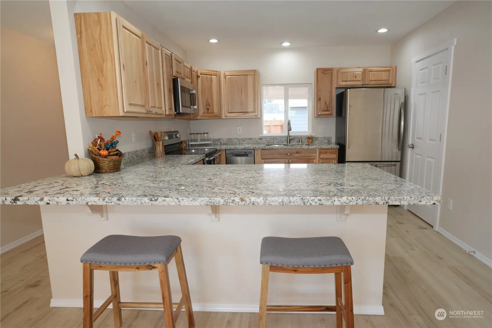 Don’t be fooled by appearances, this home is like brand new! Studs out remodel on this well located 1500 Sf 3 bedroom, 2 bath rambler. Complete new interior includes new doors, floors, trim, windows, lighting – the list goes on. The spacious kitchen is a chef’s delight, featuring elegant granite countertops, stainless steel appliances, and warm hickory cabinetry. With a seamless flow from the kitchen to the dining and living areas, this home is ideal for everyday living. Primary suite with 3/4 bath, two huge secondary bedrooms are separated from living area for maximum privacy. Outdoors there is a completely fenced & landscaped yard, covered 13×30 deck for year-round bbq’s and entertaining and a 10×16 wired shed. No disappointments here!