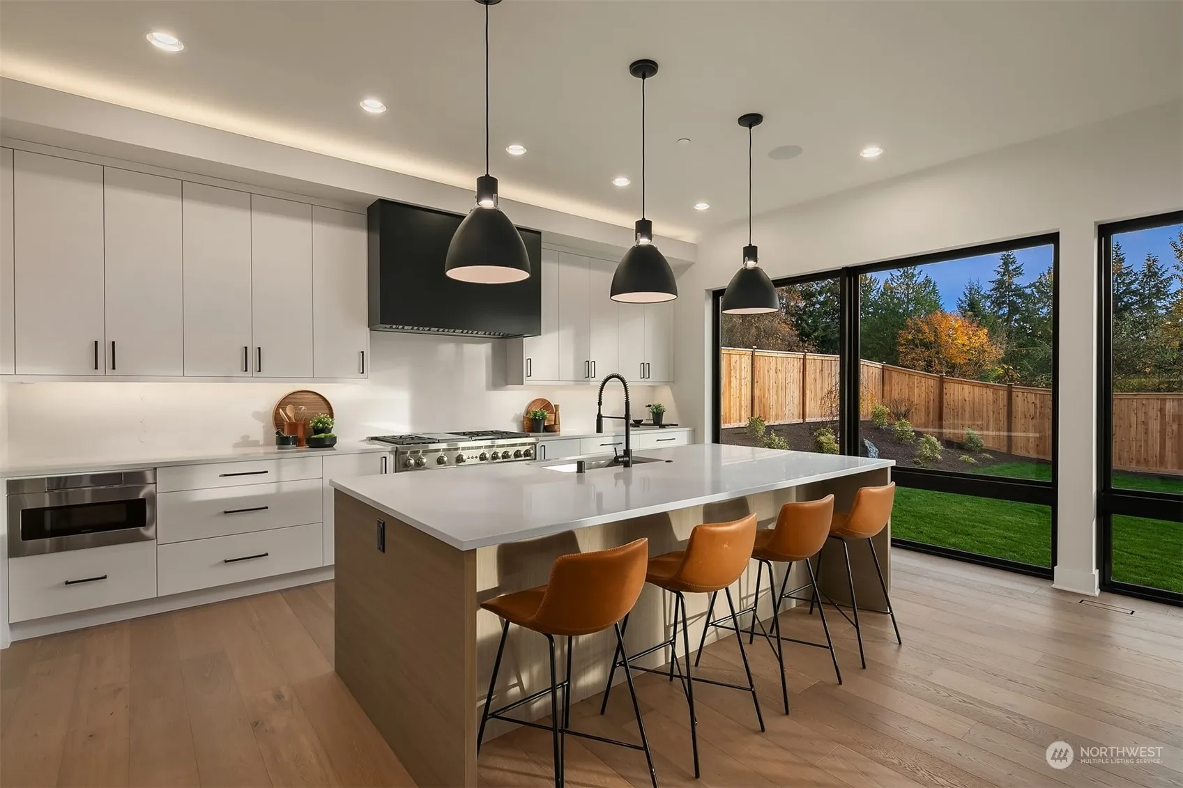 A modern masterpiece in Mercer Island, newly completed by Design Built Homes and custom designed by McCullough Architects to maximize privacy and Lake Washington views. Open concept living with chef’s kitchen, gourmet island, formal living, dining, office, and covered patio with Infratech heaters and fireplace. Details include wide-plank European Oak floors, commercial Wolf/Sub-Zero appliance package, Anderson Windows, and security, solar, and backup generator already installed. Thoughtful layout with 5 bedroom suites including a main floor gen-suite and a luxurious primary with water views and a dream bathroom with a massive walk-in closet. An amazing location with a fully fenced yard bathed in South-facing natural light. Welcome home.