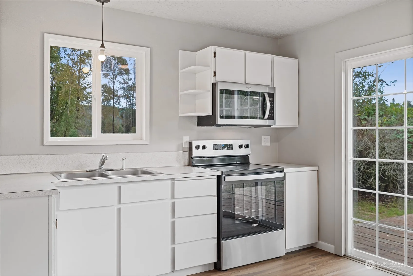 Charming home with recent updates on 3.01 flat acres. This cozy 648 sq. ft. home offers 2 bedrooms, 1 bathroom plus an attached 2-car garage. Recently refreshed with new interior paint, vinyl plank flooring, trim, and doors. Updated lighting, switches, and outlets, along with most new windows (just one slider and one window remain). Kitchen with new appliances. The exterior features a new roof, fresh paint, and updated doors including a new garage door. The pump house also has a new roof and gutters have been ordered to complete the exterior updates. Great place to bring your animals or build a new home making this place an ADU! Easy I-5 access, close to Cowlitz River & shooting range!