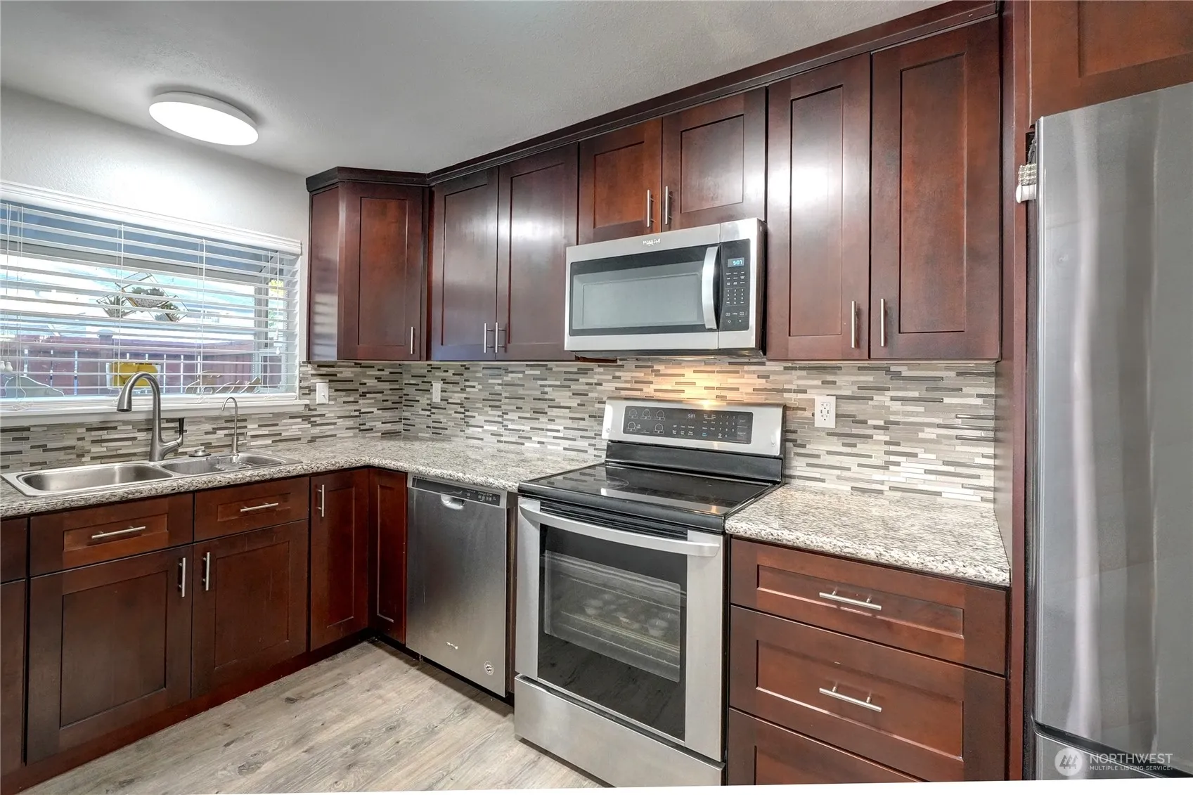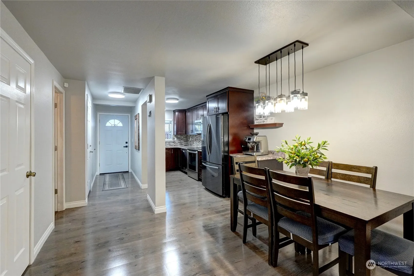 Nestled in a park-like setting, this beautifully updated condo offers serene, country-style living close to all amenities. Features include a stunning LED backlit accent wall, central A/C for summer comfort, and a private sauna on primary suite deck for ultimate relaxation. All appliances stay. Enjoy two spacious decks, front and rear patios for BBQs and lot of outdoor living. Upstairs pass-thru bathroom boasts double vessel sinks, tub with huge updated shower, and Bluetooth speaker. Ample storage, closets, attached garage, and two designated parking spots. HOA dues covers water, garbage, exterior maintenance, landscaping, and pest control. Ask your agent about up to 1% lender credit. Find your happy place in this delightful home!