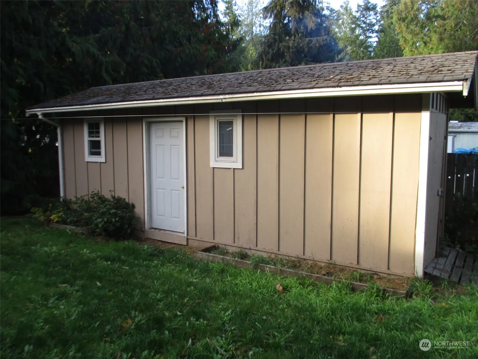 Come home to 1792 s.ft. of living in this spacious refreshed home. NEW rugs in the bedrooms, wood/laminate floor’s in the open great room/kitchen area(designed for entertaining)& fresh paint. Includes all kitchen appliances. This unique design has 2 primary suites at opposite ends of the home for great privacy with full on suites and large walk in closets. There is a den/office/extra room to make into whatever you decide. Off the deck is a well built building with a large door and ramp. Use as a garden shed or just storing your outdoor toys and supplies. The additional detached garage ensures you will never run out of room on this large double lot with 2 tax parcel #.Just a short walk to county beach/park.
