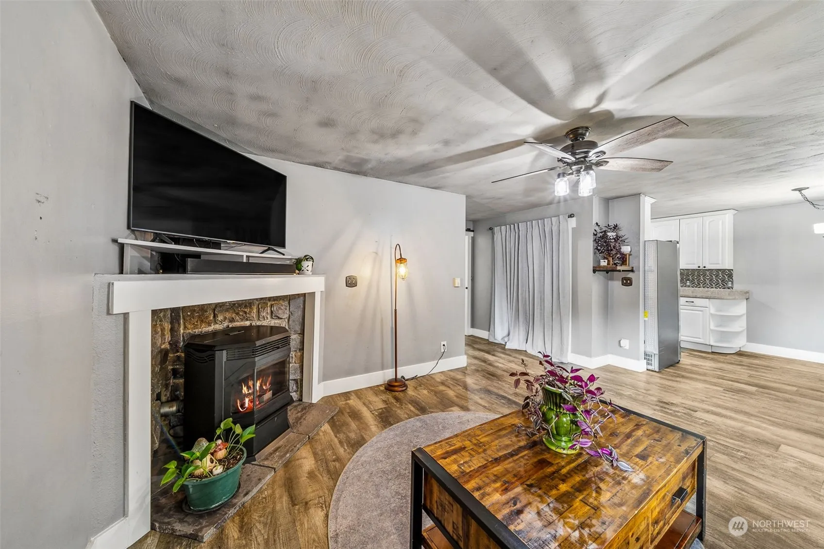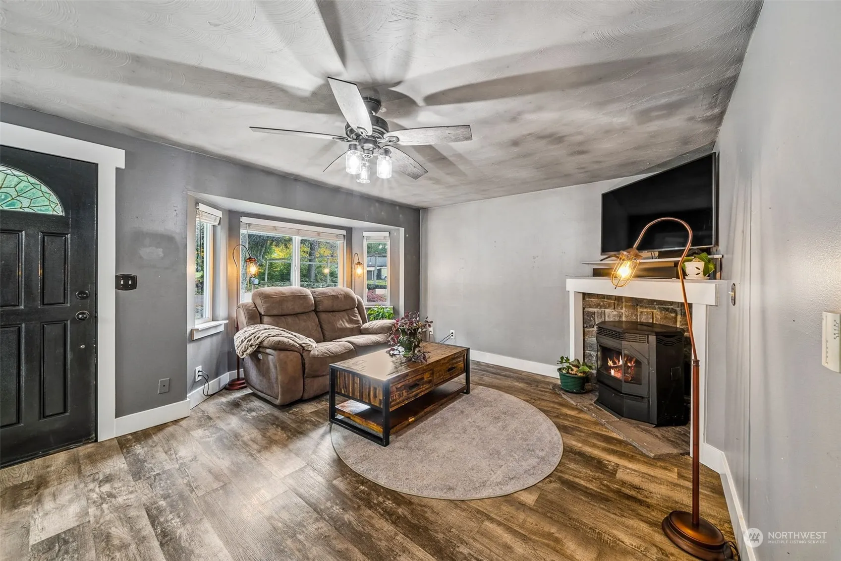 Experience affordable country living in a charming rambler! This home boasts a cozy living room complete with a pellet stove and bay window, alongside a bay eating nook with a bench seat. The galley-style kitchen features white cabinetry set above gleaming laminate floors. The bedrooms offer generous space, and there’s a convenient utility room off the kitchen with direct access to garage which includes 2 work benches. Enjoy the fully fenced backyard, complete with a newer patio, firepit and woodshed/storage. Newer exterior paint, low monthly utilities add an extra bonus to this delightful home!