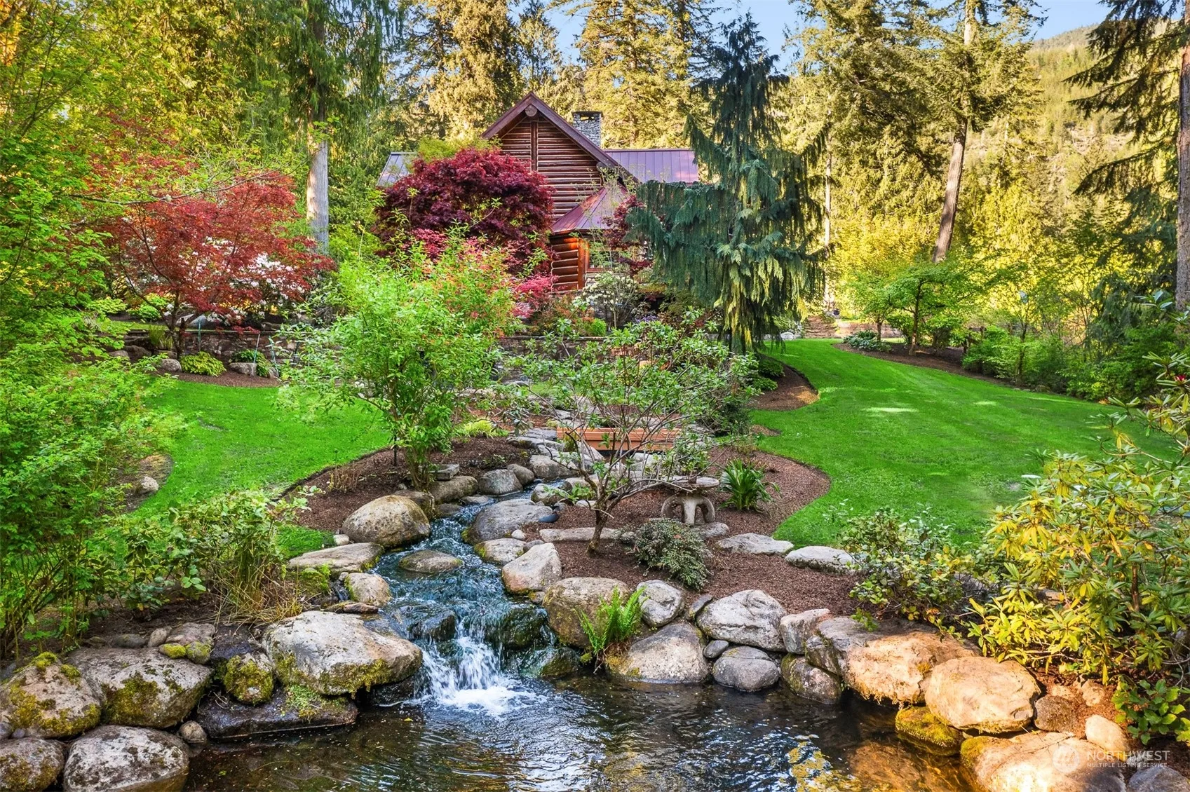 Embrace the grandeur of this Mt. Baker estate, boasting a mile of North Fork Nooksack River frontage across 15 acres. This majestic property offers an unparalleled après ski lifestyle with breathtaking panoramic views descending below the mountain range. The meticulously curated grounds feature serene waterfalls, meandering creeks, and tranquil ponds, crafting an exquisite year-round haven. Discover a true log estate crafted from the regions original fir logs to showcase exceptional artistry. The 30-foot vaulted ceilings create a grand ambiance, while a striking fireplace made entirely of local quarry limestone enhances the estate’s elegance. This property is the epitome of refined living, blending natural beauty with sophisticated luxury.
