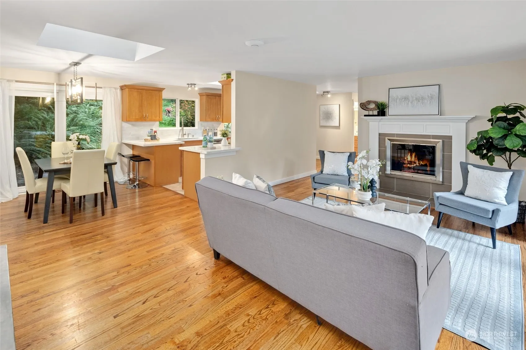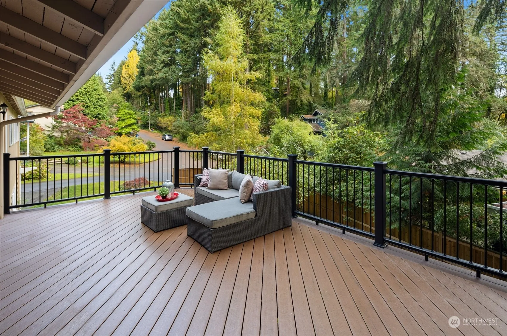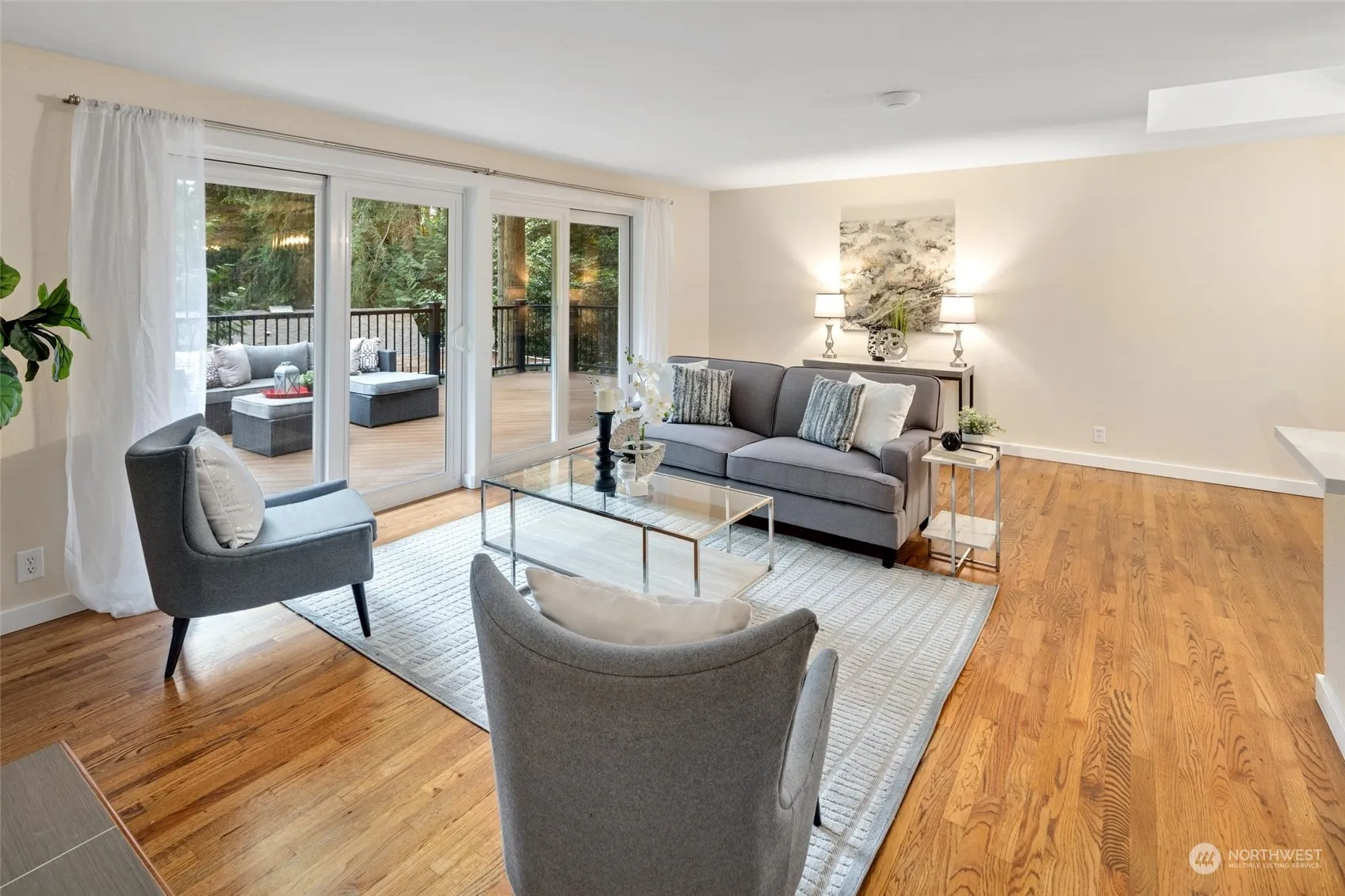 Nestled at the end of a peaceful cul-de-sac, this beautiful home is truly turnkey. Hardwood floors welcome you throughout the main floor, the living room features a wall of windows with 2 sliding doors leading to a wraparound Trex deck, perfect for entertaining. The updated kitchen features quartz counters, tile floors and a bright skylight and connects to the dining room with slider to the deck. The primary bedroom features a en suite 3/4 bath while two more bedrooms share a full bath. The lower level offers a large flex space, perfect as a family room and home office. Don’t miss the partially fenced park-like yard or the spacious 2-car garage with Level 2 charger. Home is retrofit for Earthquakes and newly connected to the Sewer.
