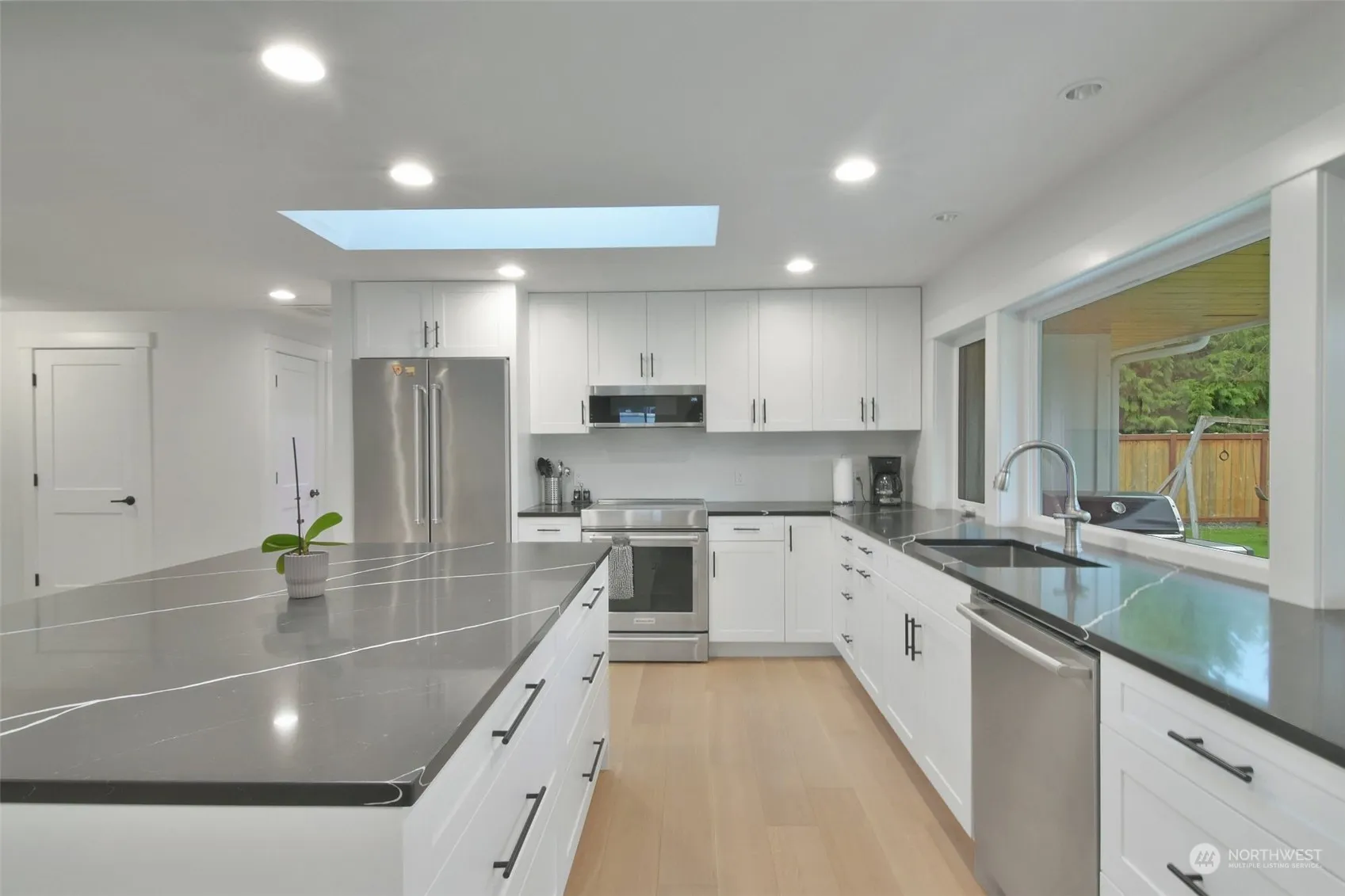 Nestled down a long private drive, this beautifully remodeled 3-bedroom rambler sits on a spacious 1/3 acre. Open great room features a stunning chef’s kitchen, complete w/ new stainless-steel appliances, breathtaking quartz counters, & an expansive island that flows into the formal living & dining areas. Retreat to the family room to enjoy movie nights by the wood-burning fireplace. Primary offers a luxurious en suite bath. Stylish remodeled guest bath. With new hardwoods, plush carpeting, new roof & AC this home is move-in ready. All appliances stay inc. W/D. Relax on the back patio while local deer visit, and take advantage of ample parking for your boat & RV. Conveniently located near 522 and Stevens Pass Highway.
