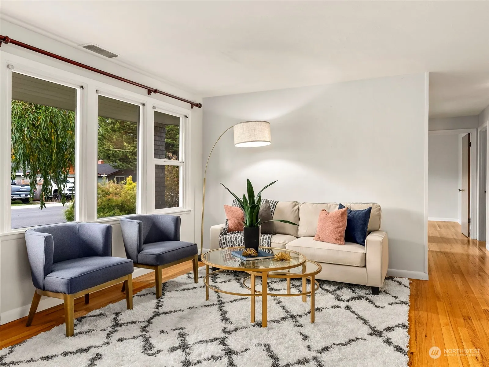 This charming mid-century modern home offers a perfect blend of classic style and modern updates. This well-updated gem features mini-split heating, a cozy gas fireplace, and beautiful hardwood floors! With 3 bedrooms plus a versatile finished room with a half bath, ideal as a 4th bedroom or family room, this home offers lots of flexible living spaces. The bright living area is perfect for relaxing, and the kitchen has brand new appliances! Enjoy the large, fully fenced backyard and patio. Nestled in a quiet neighborhood, this home is just minutes from top-rated schools, parks, and the heart of Tumwater’s shopping and dining. Easy access to I-5 makes commuting a breeze. Don’t miss the chance to make this charming home yours!
