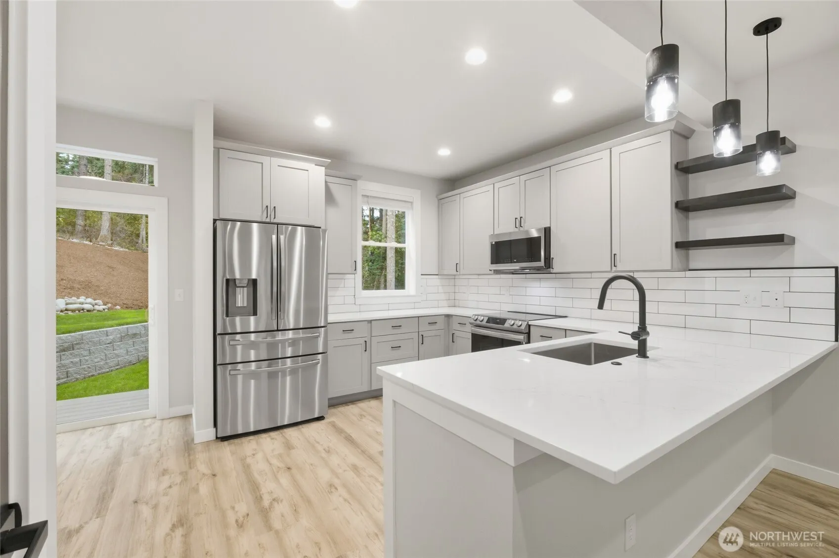 New construction in the desirable gated community of Clearwood! This beautiful 3-bedroom, 2.5-bath home offers inviting curb appeal and a thoughtfully designed open-concept layout. The kitchen features stainless steel appliances, shaker-style cabinetry, Quartz countertops a peninsula eating bar, and a modern PEX water distribution system. Additional upgrades include, pre-wired Level 2 EV charger, and central A/C for year-round comfort. Durable waterproof laminate flooring flows throughout the main living areas, with cozy carpet in the bedrooms. Upstairs, the spacious primary suite boasts a private bath and walk-in closet. Just blocks from Madrona Beach.