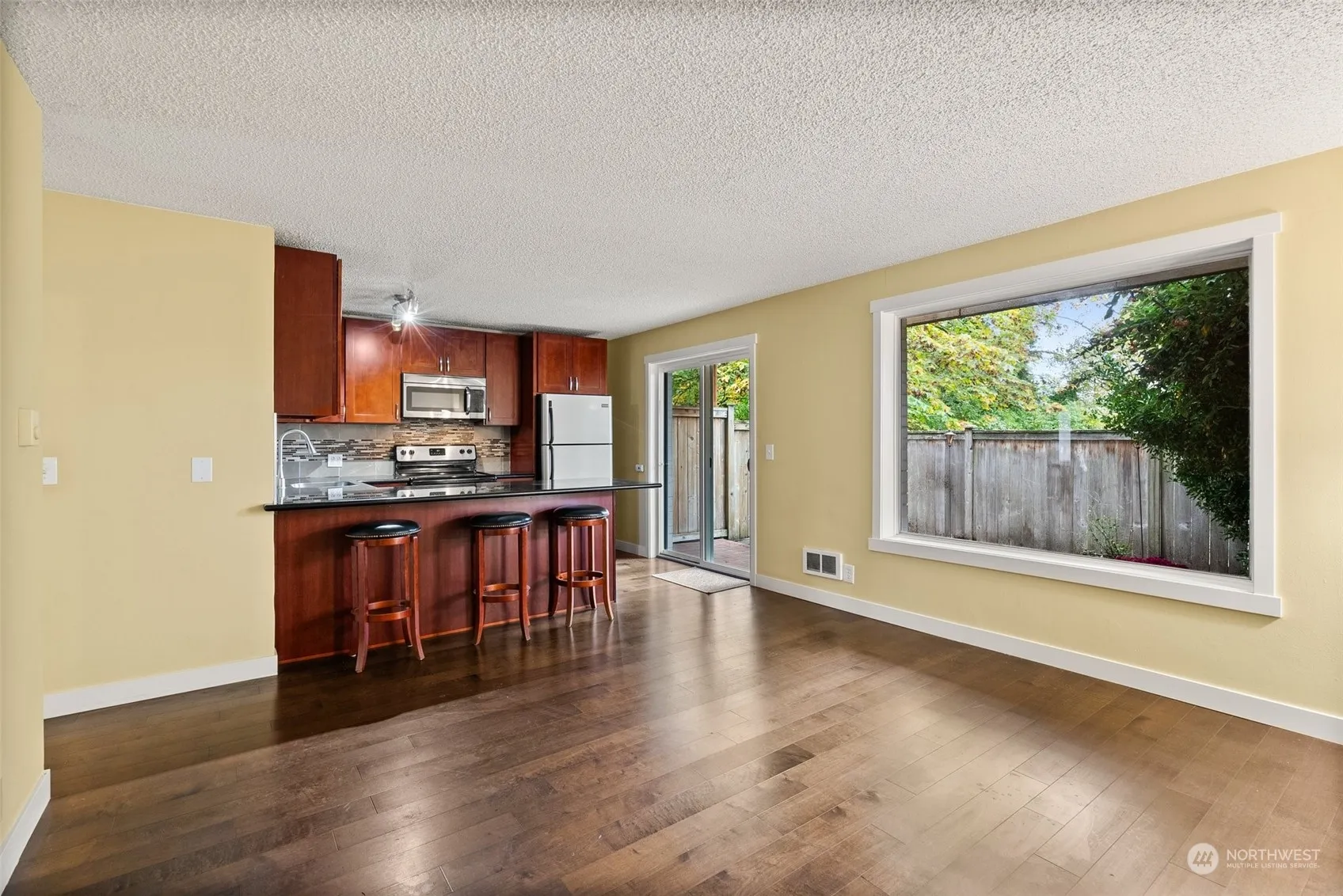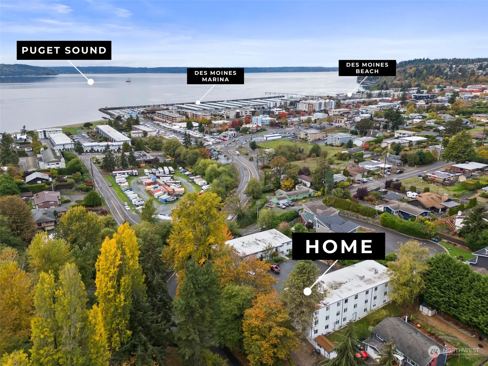 Remodeled in 2014 this comfortable condo is the perfect starter home or rental investment. Just minutes from the Angle Lake light rail station and incredible outdoor amenities, such as Saltwater State Park and Des Moines Marina, the age old saying is true: location, location, location! Featuring two sizeable bedrooms with an open kitchen and living room, the ground level corner unit requires only 3 steps from the parking lot to the front door. The laundry facility is nearby, too. The best part?! The fenced outdoor living area and kitchen feature a peek-a-boo view of the Puget Sound from which you can enjoy the sunsets painting the sky to the West. Don’t miss this tremendous opportunity and make this condo your new home today!