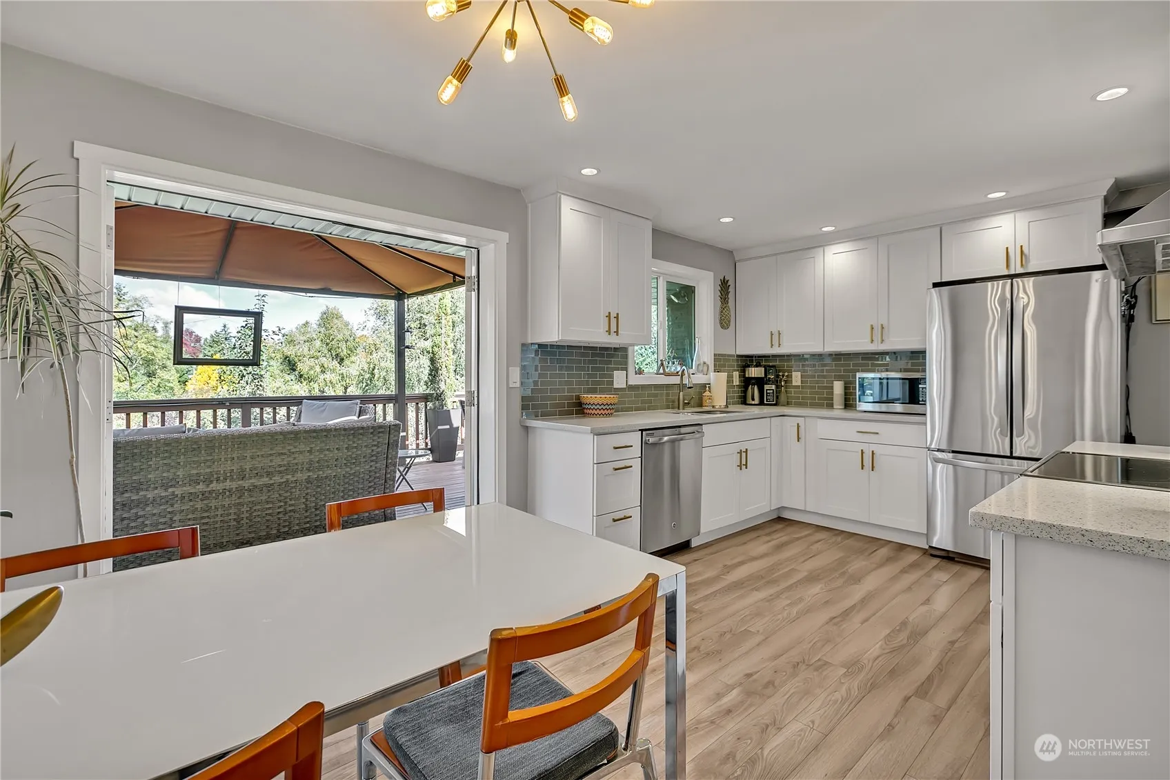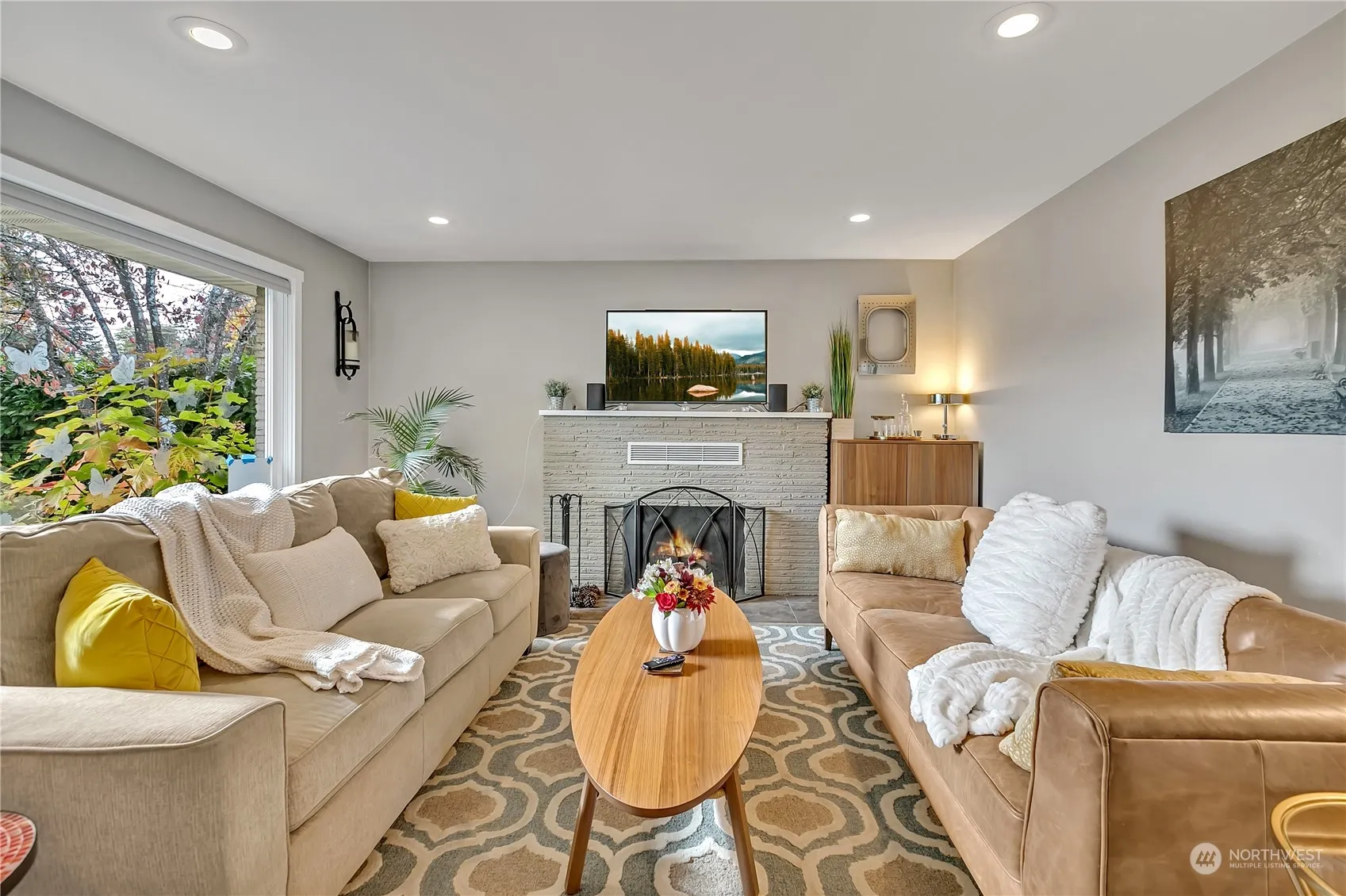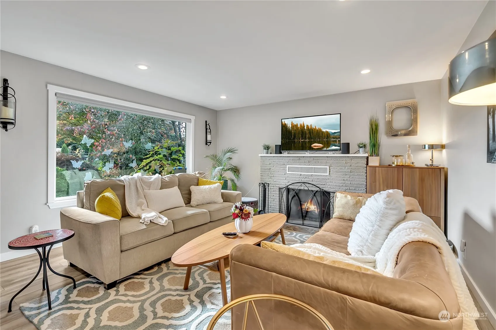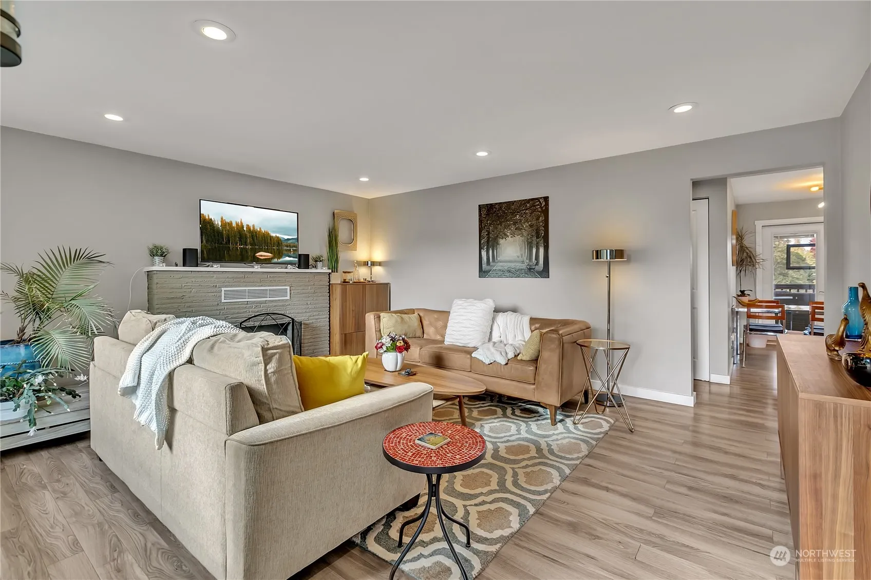 Mid-Century built Brick rambler with daylight basement & territorial views. Beautiful finishes throughout, from the sleek floors to the elegant doors & millwork. A cozy living room & a wood fireplace. An updated chef’s kitchen boasts quartz counters, shaker cabinets, tile accents & Stainless Steel appliances. Main floor has 2 beds, an updated bath with a walk-in shower & soaking tub. Downstairs offers a generous bonus/rec room & 2 bedrooms & a bath/laundry. From the main floor step outside the French doors to the entertainment-sized deck, fully fenced back yard with fruit trees, and beautifully landscaped front and back yards. 1-car garage ready for electric car charging. Excellent location, close to shopping, freeways, airport & transit!