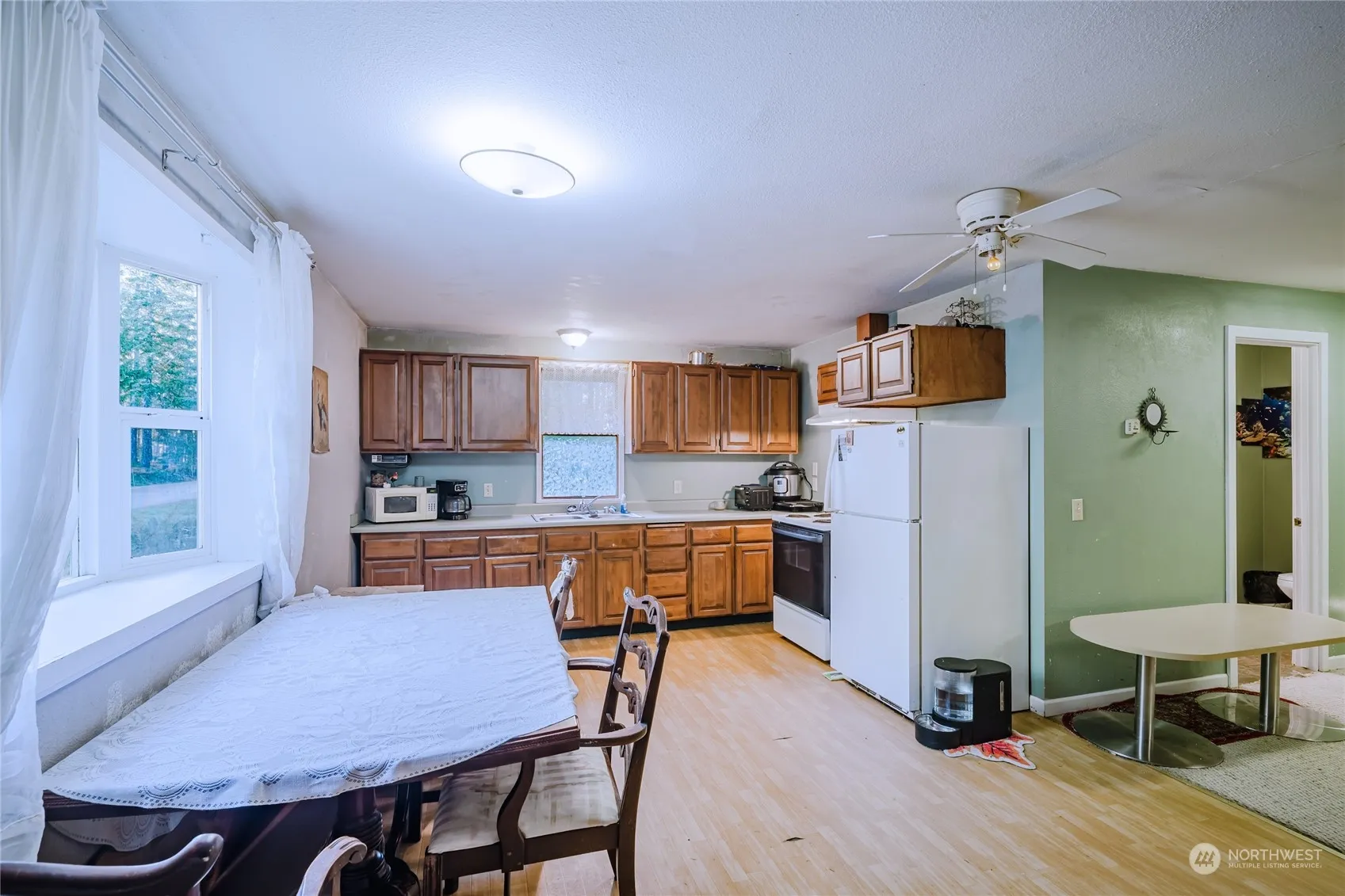 Seeking tranquility and serenity? Looking for a project for the winter? This home is sure to captivate you. The spacious kitchen and living area offer an open floor plan ideal for hosting. Plenty of parking is available, including an RV spot with full hook-ups. Nestled on a quiet cul-de-sac and dead-end street, privacy is a given. The generous kitchen features extensive cabinetry, abundant storage and a garden window ideal for plant enthusiasts. There are two sizeable bedrooms and a large bathroom, all appliances are included. Bring your creativity and toolbelt and make this yours today! Act quickly – This home is a steal and will sell fast!