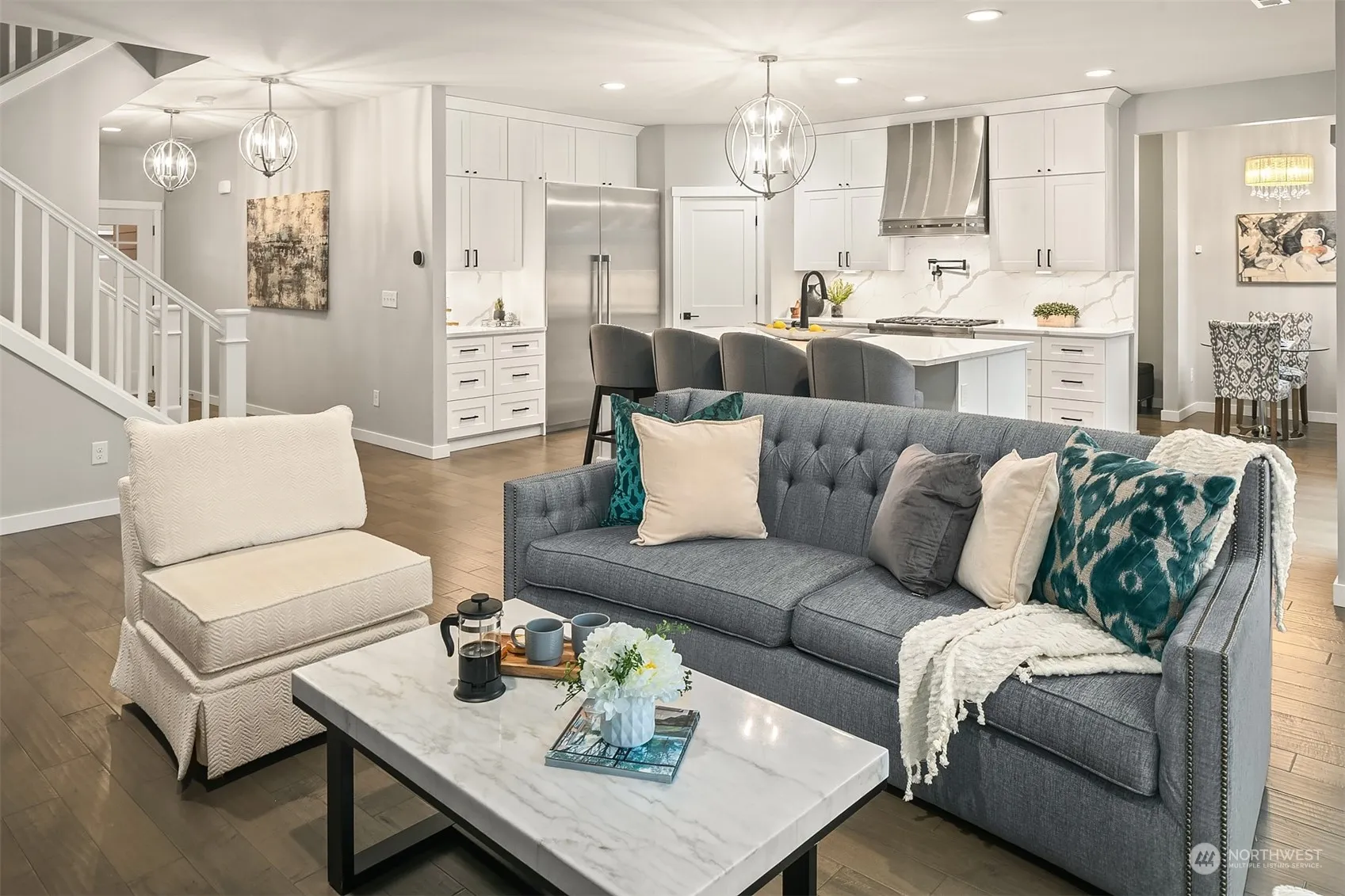 Recent remodeling make this Pulte Homes built Craftsman near the Springhaven Glen community feel like a model home. Enter to 10-foot ceilings w/a main floor office, a spacious, light-filled Grand Room w/ striking gas fireplace. A chef’s kitchen featuring Moen fixtures, quartz countertop & top-of-the-line appliances (2022), views of a large, fenced backyard. A breakfast nook adds convenience. Upstairs is a family room/bonus room, a luxurious primary suite w/ recently remodeled bathroom & walk-in closet. A beautifully appointed full bathroom, another bedroom, workout/flex room and spacious utility room provide for all your needs. Mins to trails, Rock Creek Elementary School, Rock Creek Natural Area, Maple Valley Farmer’s Market.