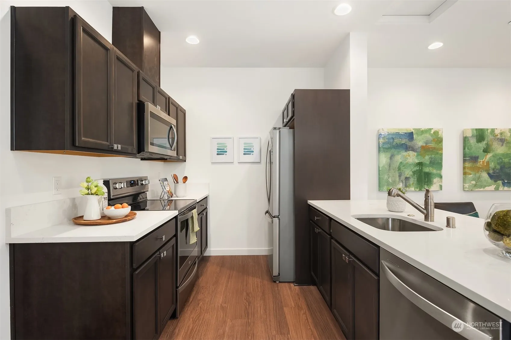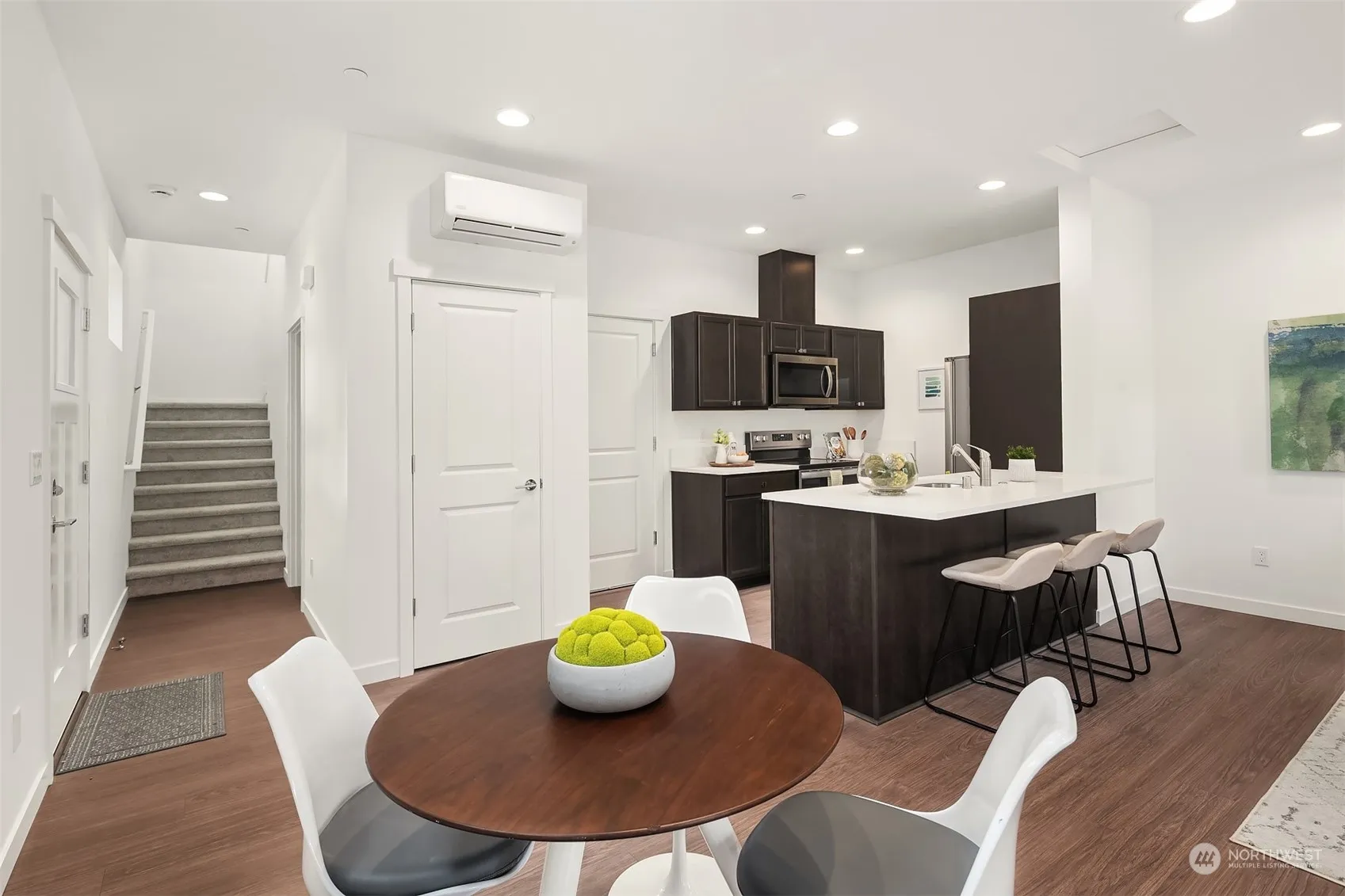 FOR DRIVING DIRECTIONS use the following: 1240 SW 124th St. Welcome to this thoughtfully designed 2 bed, 1.5 bath townhome created for modern living. With high ceilings and refined finishes, the main floor offers a pretty powder room, a light-filled great room including a kitchen with quartz countertops, island seating and SS appliances. Off the kitchen is a cozy family room and a dining area with entrance to an idyllic covered porch, perfect for relaxation. Upstairs, there are two spacious bedrooms, a full bathroom and the laundry area. This attached dwelling has A/C, a 1 car garage and sits in a charming cul-de-sac community featuring a dog run and a playground.