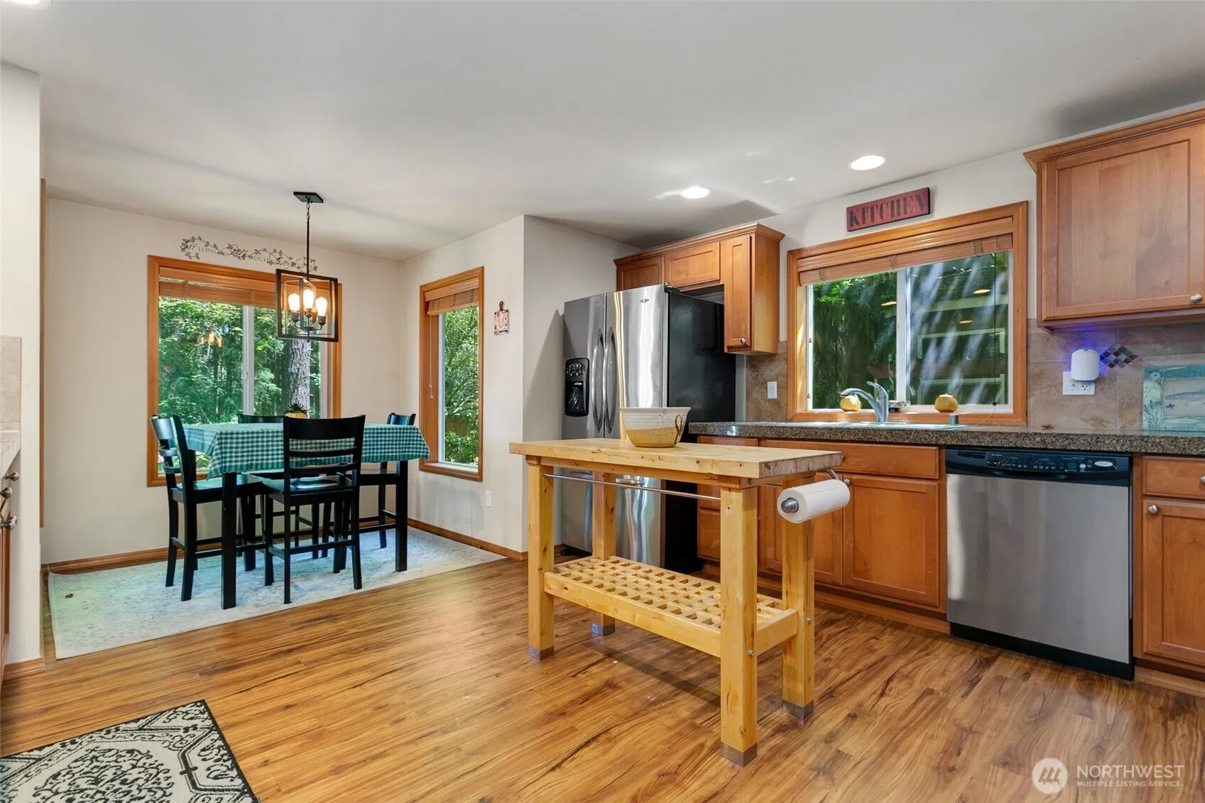 Discover this well-cared-for home in the sought after Maple Creek neighborhood that backs to a tranquil wooded greenbelt. Light-filled formal living and dining areas showcase vaulted ceilings, while the kitchen features granite tile counters, stainless appliances, generous cabinetry and a casual dining nook. The inviting family room with gas fireplace creates the perfect spot to gather. Retreat to the spacious primary suite with vaulted ceilings, a spa-like 5 piece bath and custom walk-in closet. Outdoors, enjoy a private landscaped yard with extended patio for entertaining or relaxing. Extras include A/C, storage shed, and a convenient location near parks, shopping, and more.