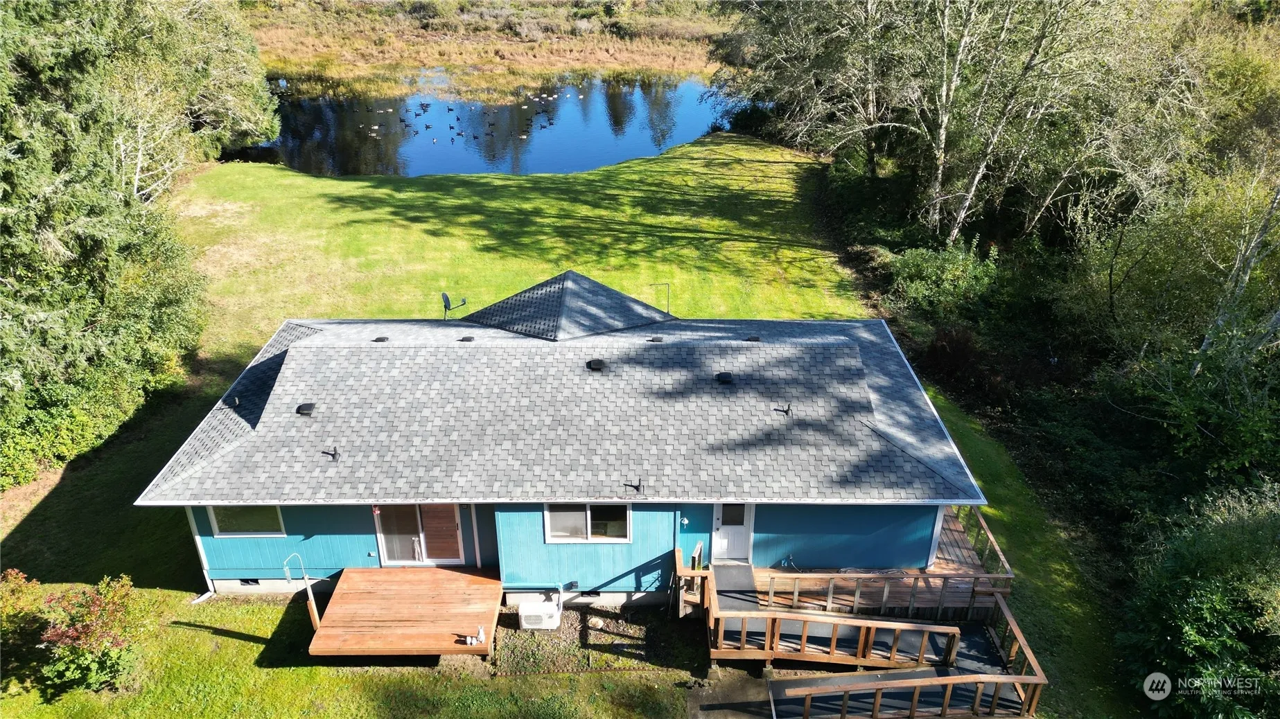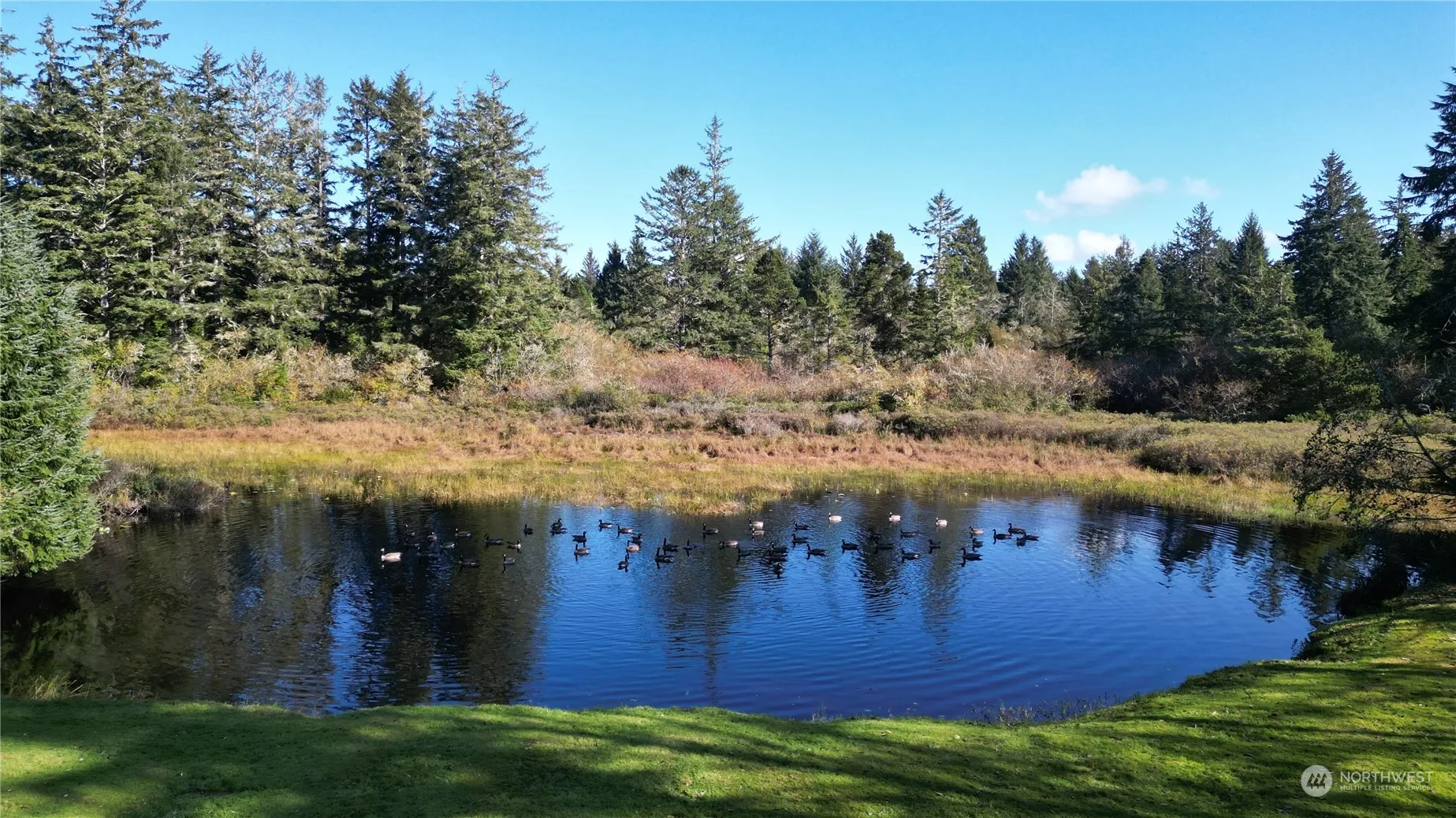 Beautiful stick built home on 2+ park like acres. The home has a wonderful view of the pond out of vaulted windows to the east for great morning sun. Main level living with an accessible ramp. The large living room has huge windows to take in the wildlife and lake views. A large primary suite has an attached 5 piece bath and views of the pond. On the opposite side of the home are the other 2 bedrooms and full bath. The kitchen has lots of counter space and cabinets along with the utility room. A nice sized dining room is next to the kitchen and living room. Quiet, dead-end street for privacy. Large detached garage with workshop.
