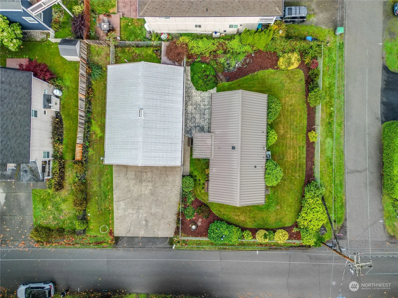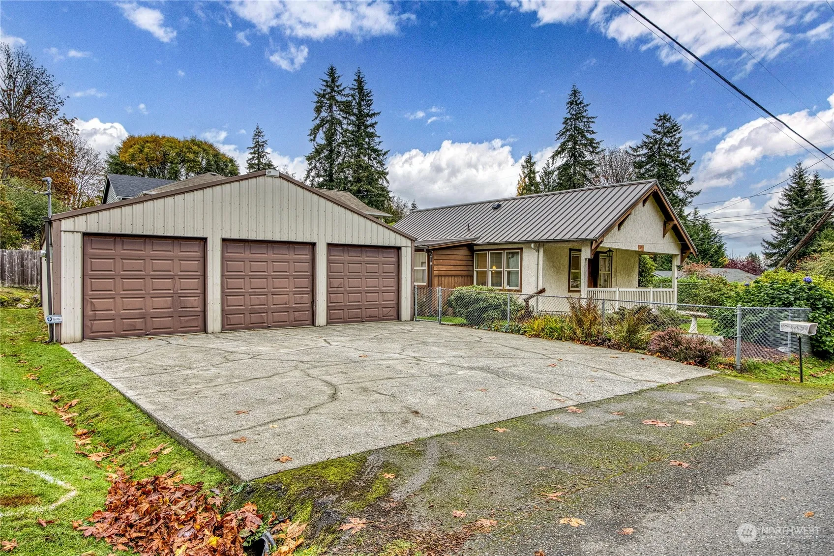 Affordable well loved home on corner 2 lot(s) (one tax parce) with detached general purpose building with shop space and covered parking for several vehicles. Updates over the years include updated kitchen and appliances, metal roof on the house, working furnace/heat pump, newer windows with mini blinds, chain link fencing completely around the house. Store, post office, fire department, community dock, boat launch and beach just three blocks away. Park & ride 2.5 blocks away. Being sold as is, where is. Compressor and refrigerator in the detached utility building stay. Located between Bainbridge and Kingston ferries.