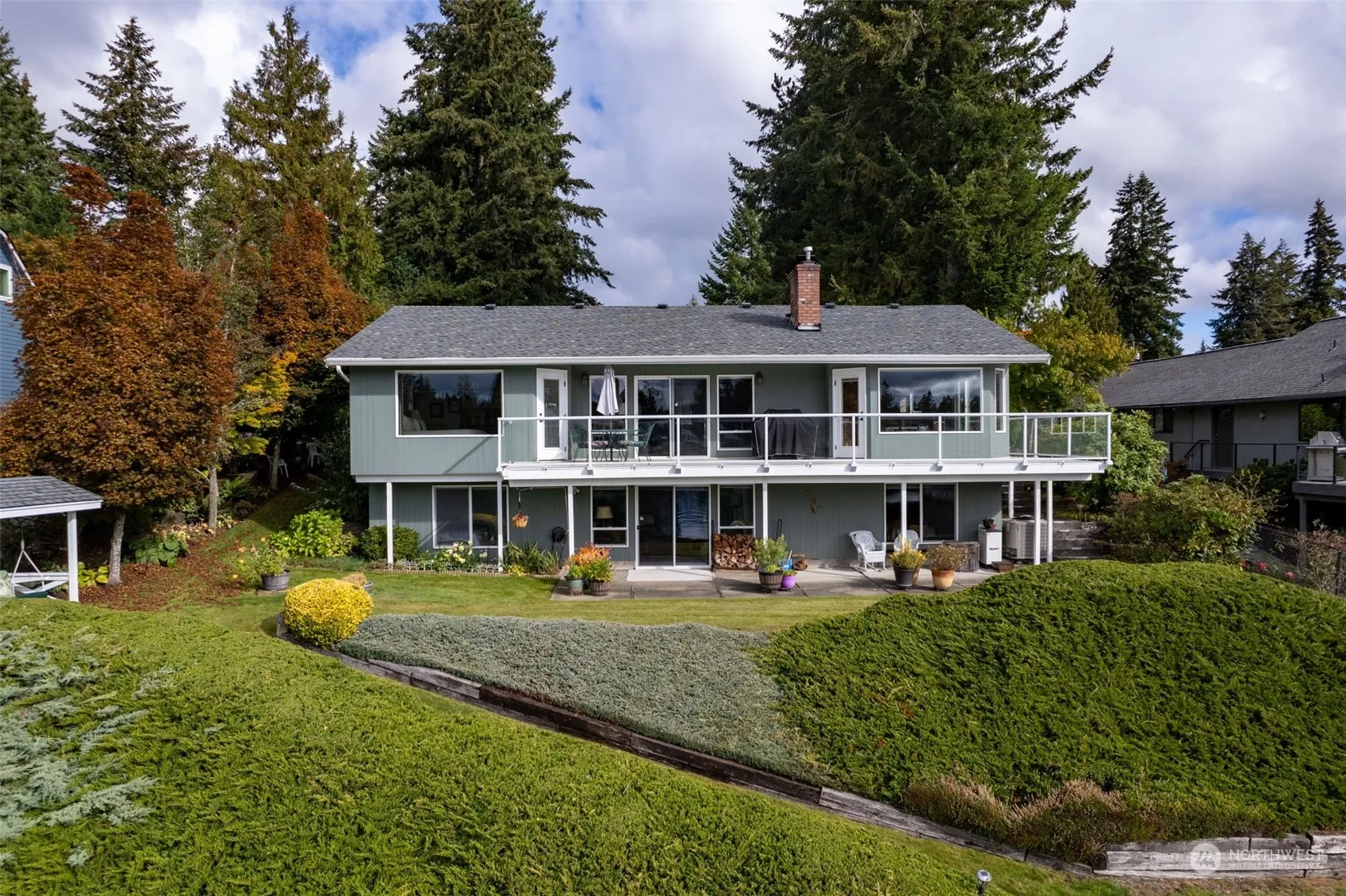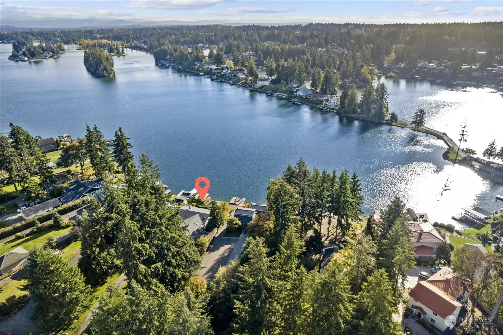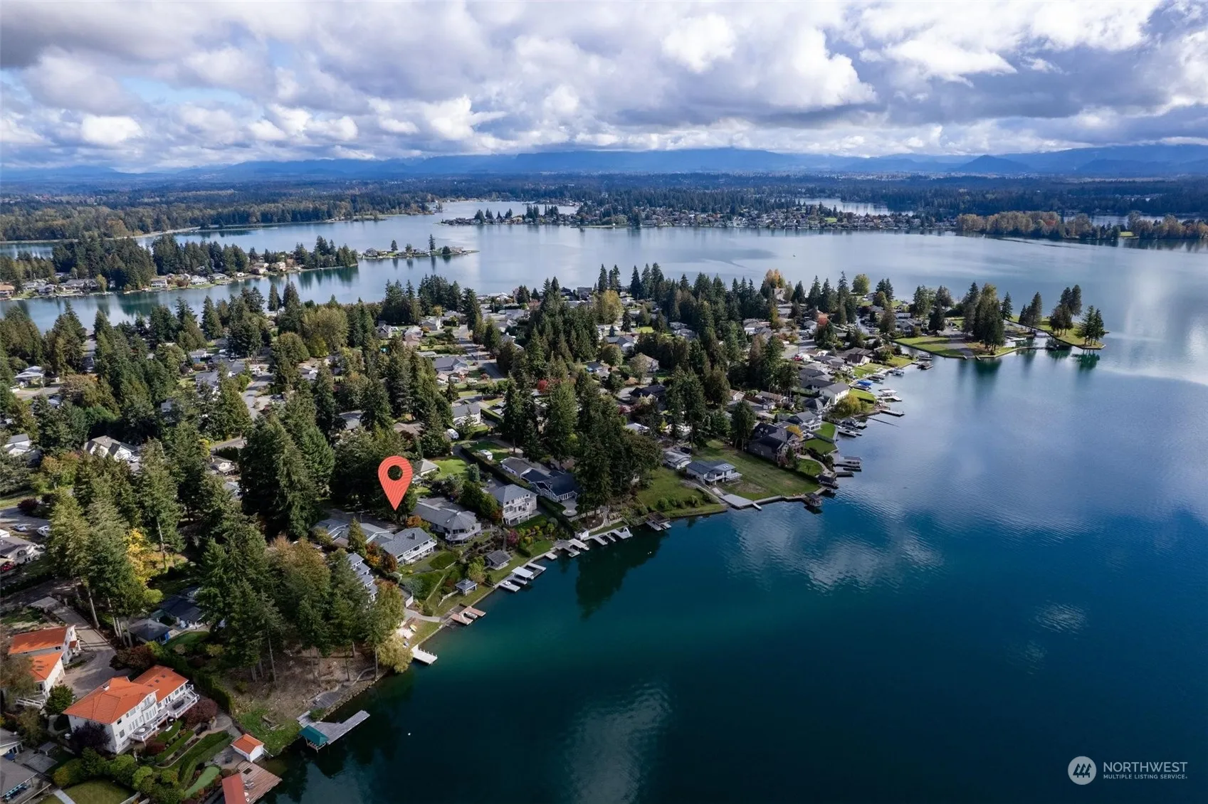 Breathtaking lake views from almost every room in this Driftwood Point home, available for the first time in 30 years! Expansive meticulously maintained rambler with a fully finished daylight basement. Primary bedroom on main floor boasts lake views and access to wrap around deck, plus a second primary/office on main w/attached bath. Kitchen features updated stainless appliances and abundant cabinetry. Beautifully refinished hardwood floors. Natural light that shines throughout home! Downstairs is a 2nd fully updated kitchen, rec room w/fireplace, bedroom and bath/laundry room! Easy walk-out access to a terraced yard leading to Mt Rainier views & 70ft of pristine waterfront w/ private dock. Detached 2 bedroom ADU currently rented @ $2k/mo