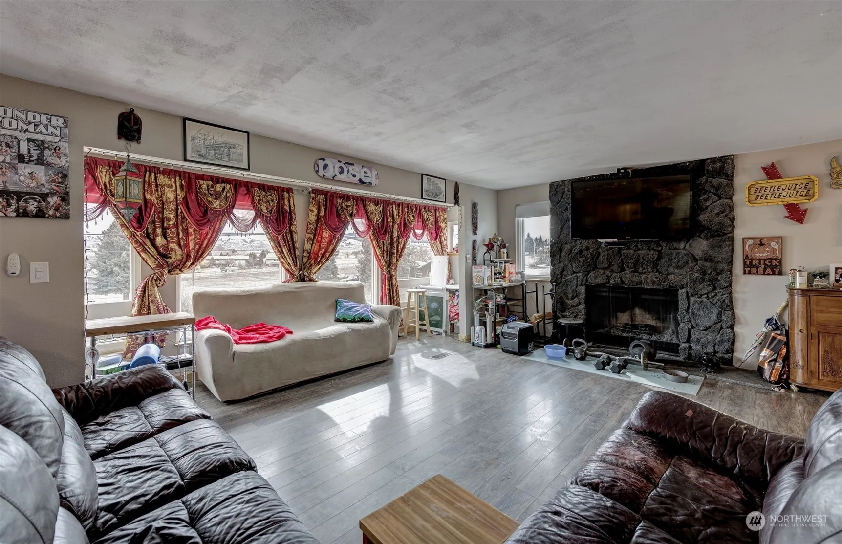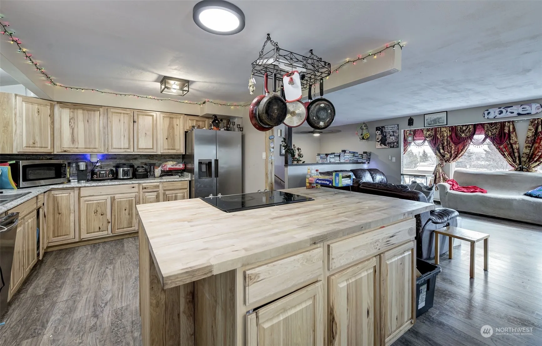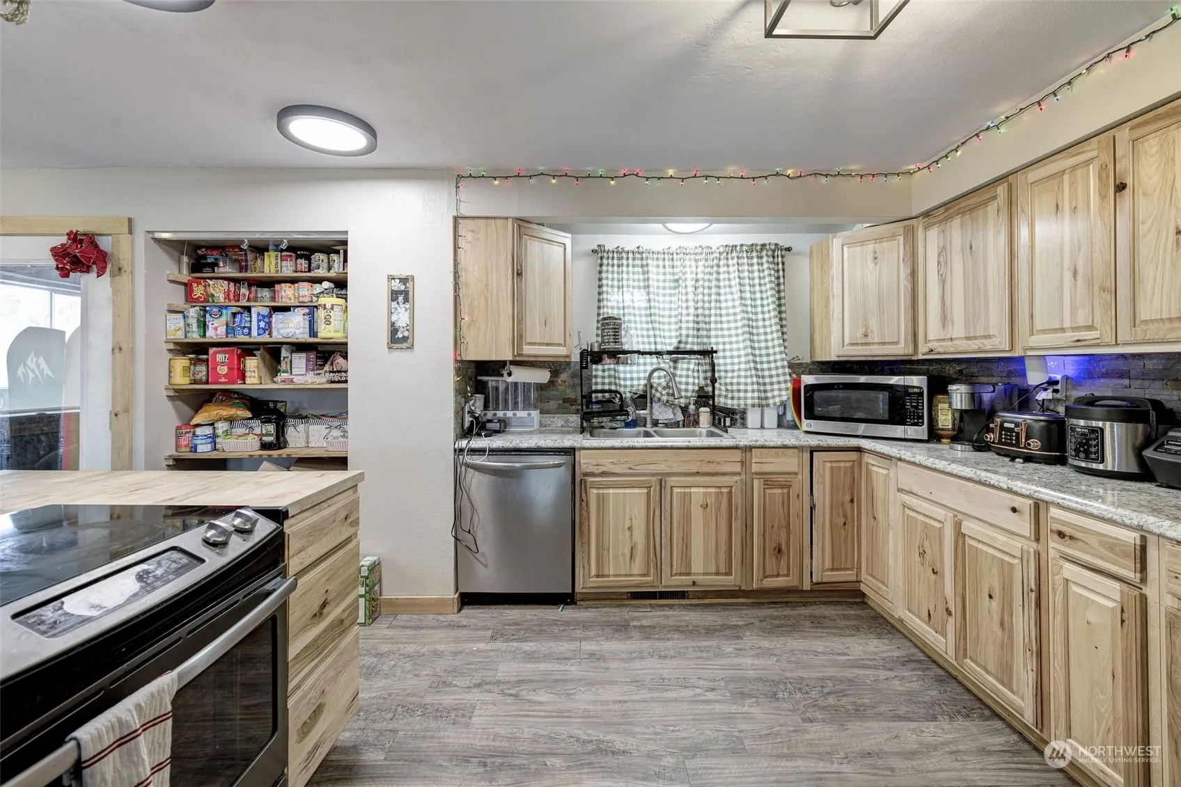 Great multi-family potential! This 3 bedroom, 2.5 bath home was previously remodeled with new flooring, interior paint & trim, lighting, new windows and a gorgeous kitchen island. New HVAC system installed in 2022! Enjoy the spacious living room and wood-burning fireplace. Upstairs you will find the primary bedroom w/attached bath, 2 additional bedrooms, and a full guest bath. The downstairs includes a spacious living space that is currently being used as a large primary bedroom! The extra room downstairs can be utilized as a walk-in closet or office space. The garage has been converted to a 2nd kitchen with a separate entrance, great for a rental or multi-generational living. Enjoy the spacious yard w/ patio space and fenced backyard.