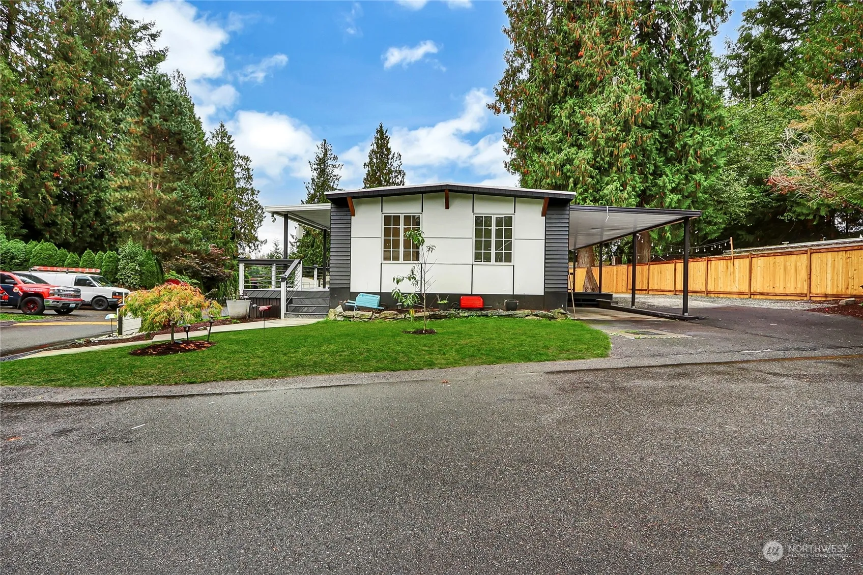 MOTIVATED SELLER!! This remodeled home is fully equipped with stylish designer touches! With 3 bedrooms and a bonus room/office, it features all new electrical, lighting, plumbing, drywall, insulation, and water heater. The stunning bamboo floors run throughout with tile in the bathrooms. The primary suite offers a luxurious walk-in shower and spacious walk-in closet. The updated kitchen stands out with stainless steel appliances, a quartz island, an extensive tile backsplash complemented by a sleek barn door and decorative wall. Outside, you can unwind on the trex deck or relax on the covered front or back porches. Diamond Valley MHC is a pet friendly community for all ages. This home truly has it all!
