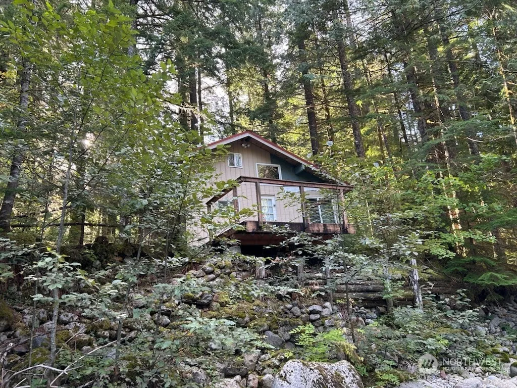 Nestled in the woods, this solid cabin is perfect for nature lovers ~ enjoy a serene and quiet getaway with just the necessities and the peaceful sounds of the river. This is the location you’ve been waiting for! Interior boasts lovely blue stained pine floors, wood finishes, vaulted ceilings, main floor bedroom and loft space that fits 4 singles or 2 queen beds. A private deck captures the wooded landscape and the crystal-clear waters of Silver creek! An outbuilding provides easy storage + outhouse facility. Bring in your water or set-up an alternative system to meet your needs. Cabin is powered by generator. Two decks, firepit, picnic table, horseshoe pits and plenty of parking. Endless trails and privacy on .21 acres ~ borders forestry!