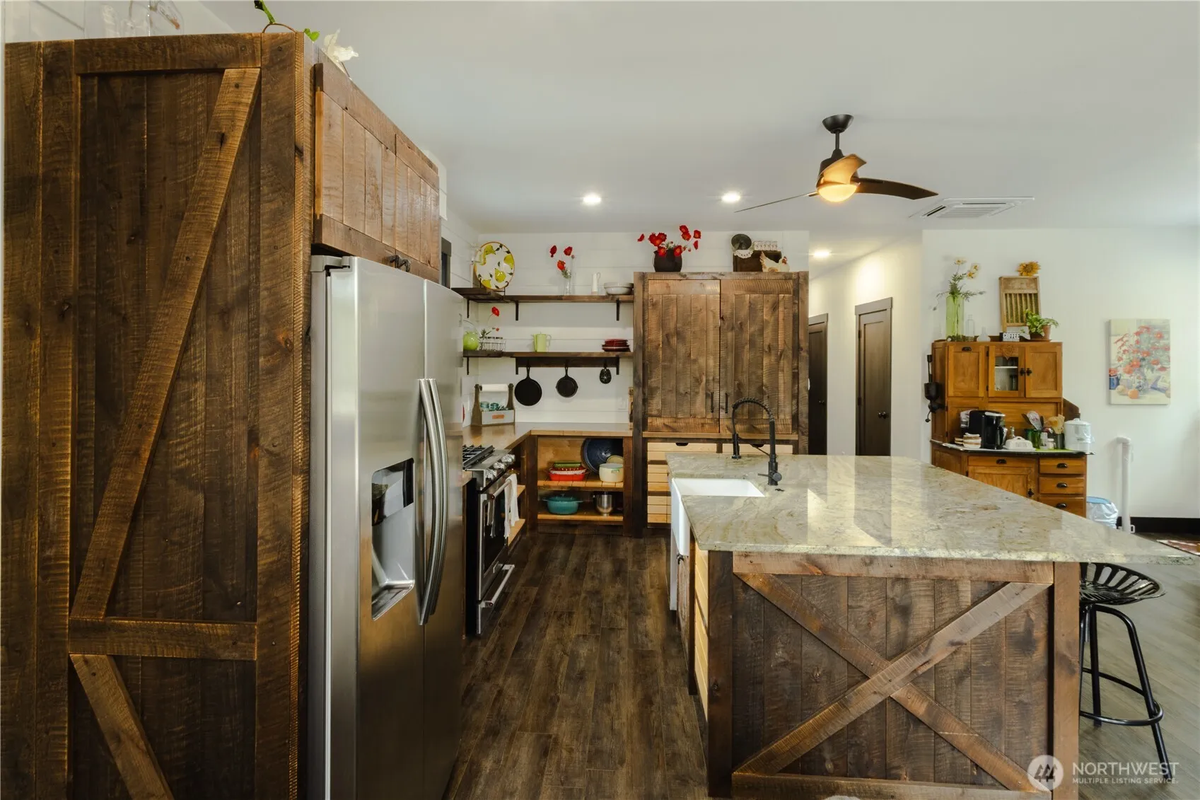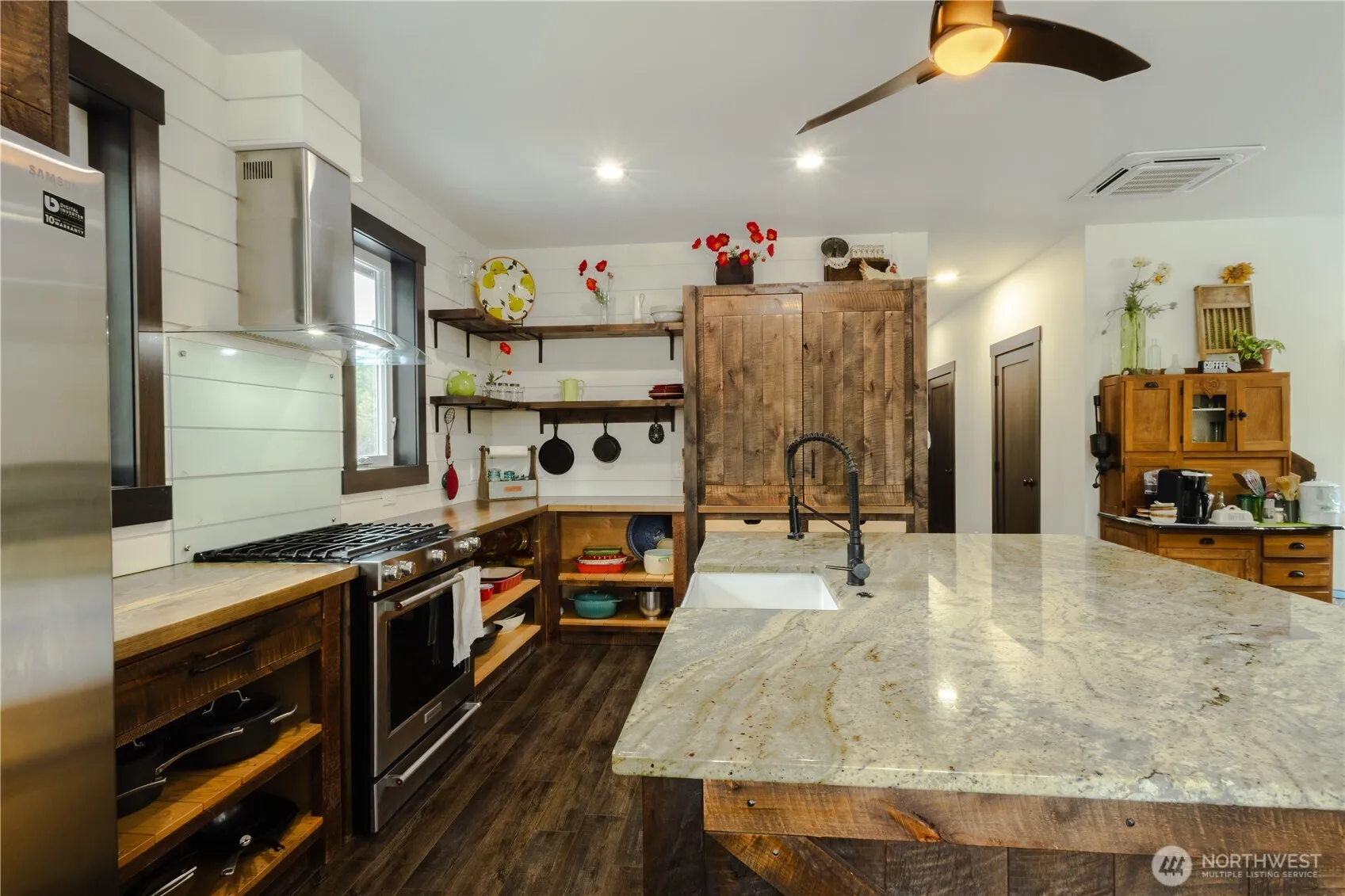 Discover your ultimate mountain escape! Perfect for hosting friends, this retreat offers endless adventures-snowmobiling, motorsports, hunting, fishing, and horseback riding. This property offers stunning views, river access, and abundant wildlife. Unwind in the luxurious spa room, featuring a hot tub, soaking tub, walk-in shower, and radiant floors. The open-concept living space boasts abundant natural light, granite countertops, custom cabinets, and a cozy fireplace. Includes 2 full RV hookups, an oversized shop/garage, a large garden shed, and ample covered storage for toys or equipment, this property has it all. Contact your agent for the full amenities list!