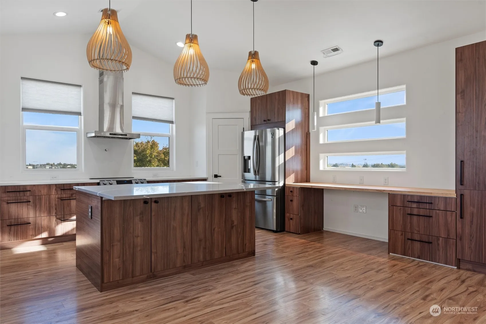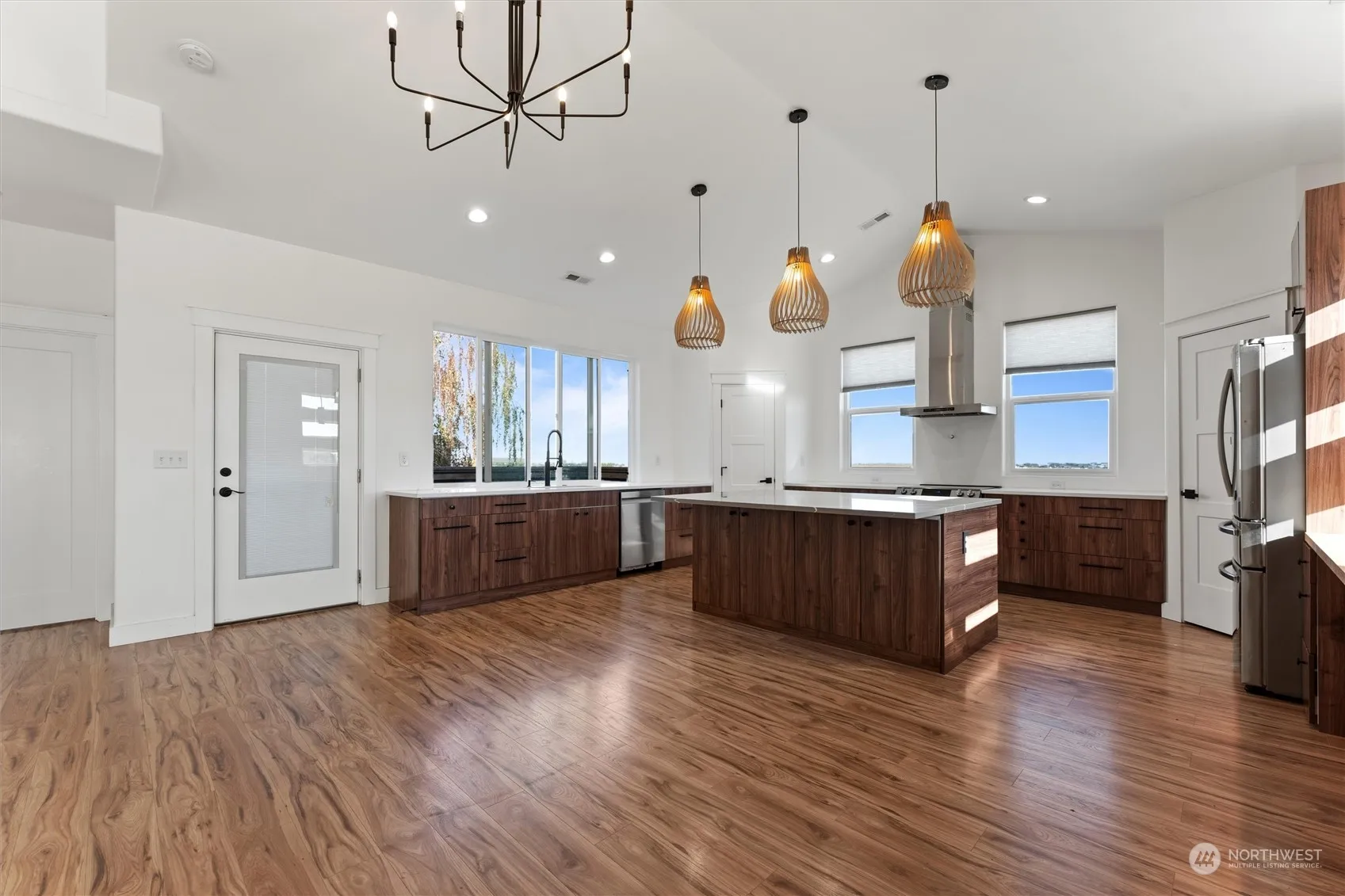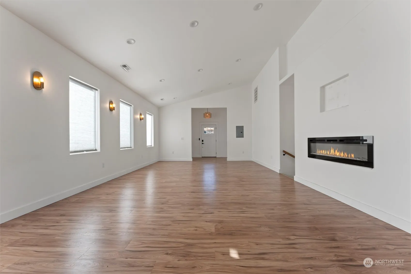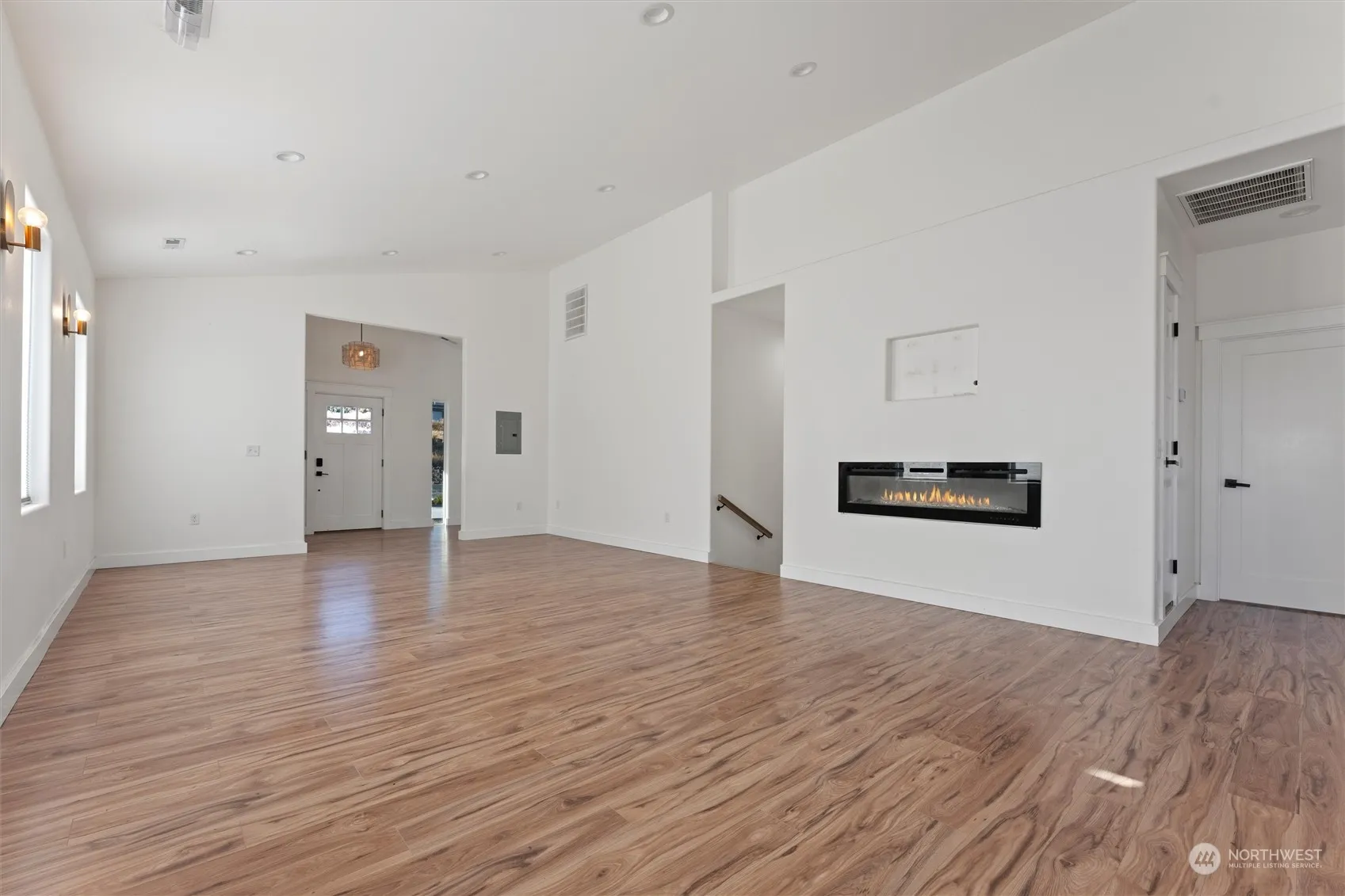 This stunning 4-bedroom, 3-bath home offers over 2,800 square feet of modern luxury. Featuring beautiful evening views, the open floor plan is enhanced by LVP flooring throughout and an inviting electric fireplace. The kitchen is a chef’s dream with sleek stainless steel appliances and elegant finishes. The primary suite boasts a heated tiled shower, heating flooring, a soaking tub for ultimate relaxation. The laundry room also has heated flooring! Elegant finishes, modern design, and ample space make this home a must-see! Perfect for both comfort and entertaining.