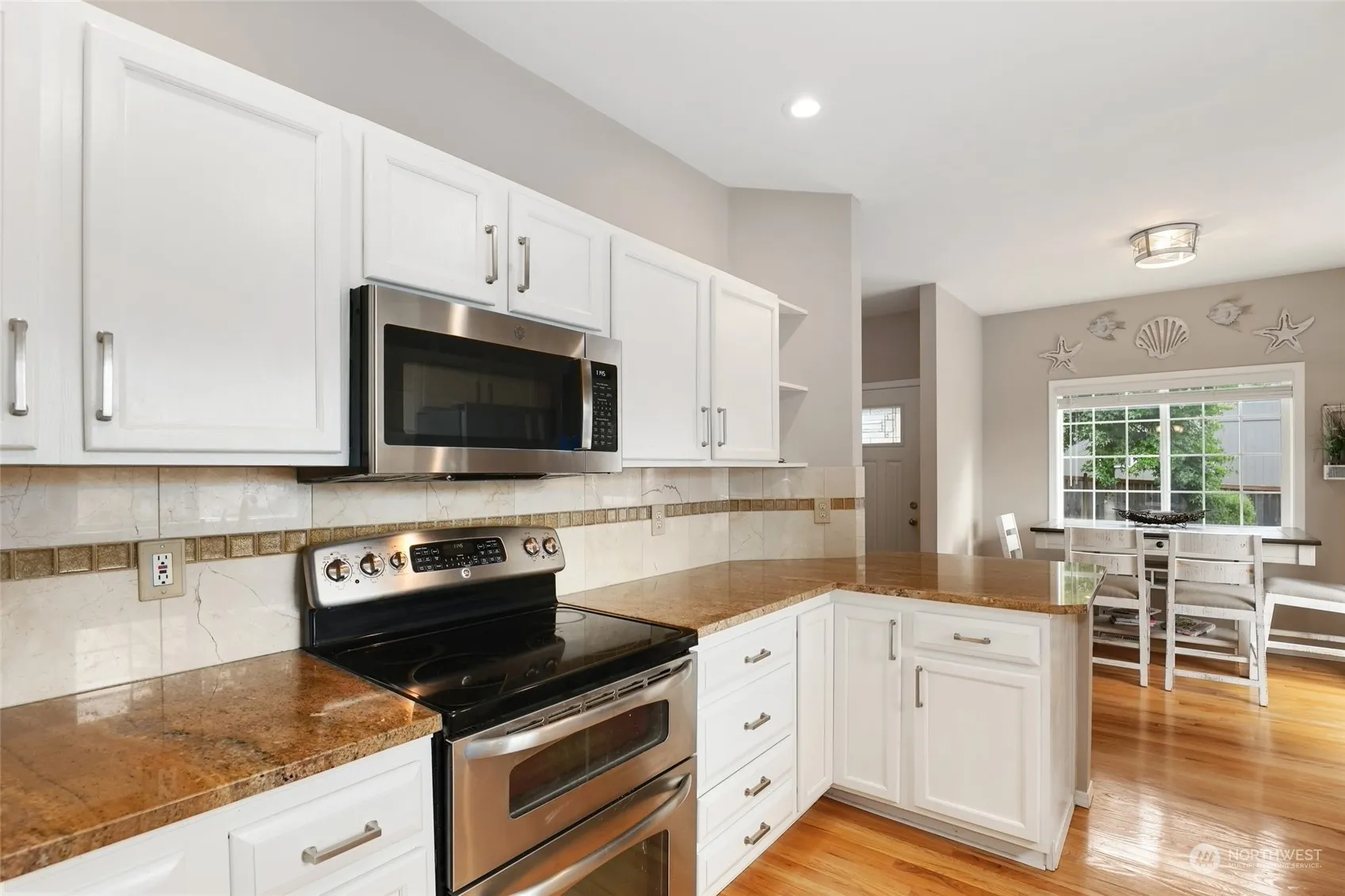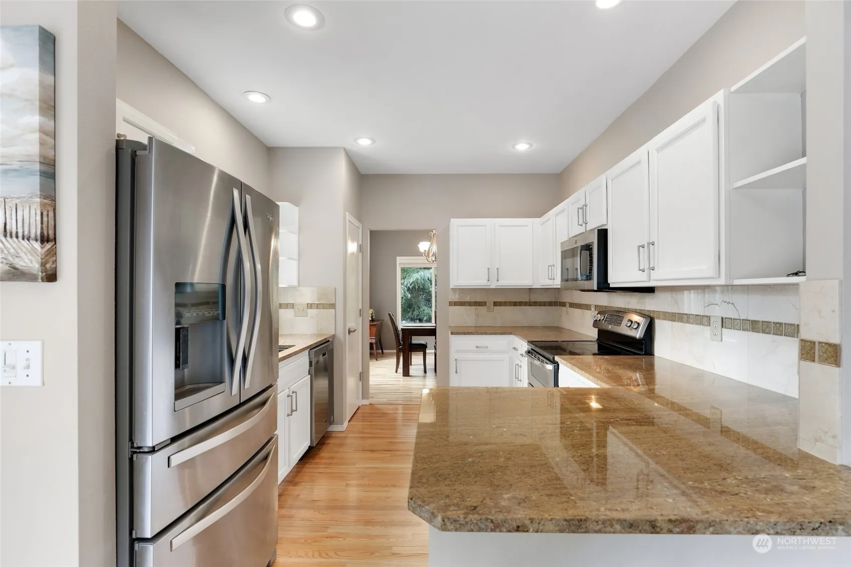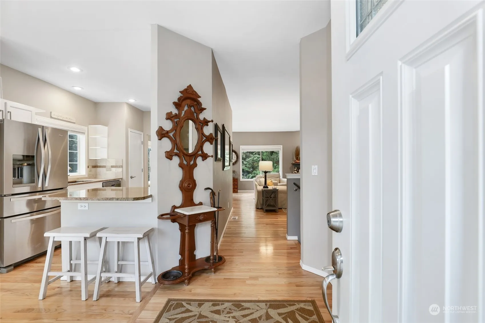 Morgan Creek home nestled on a Private .28 acre lot with RV parking. Home features TWO Primary suites, Kitchen with Granite counters with eating space, Dining room Large living room with gas fireplace. 9 foot ceilings on main floor. Home sets up well for possible MIL down stairs with huge Family room (possible to add a forth bedroom) and En-Suite. Secluded back yard, property backs to King County parks land. Pride in ownership shows with newly painted inside and out, new flooring on main floor, new roof, new Furnace.