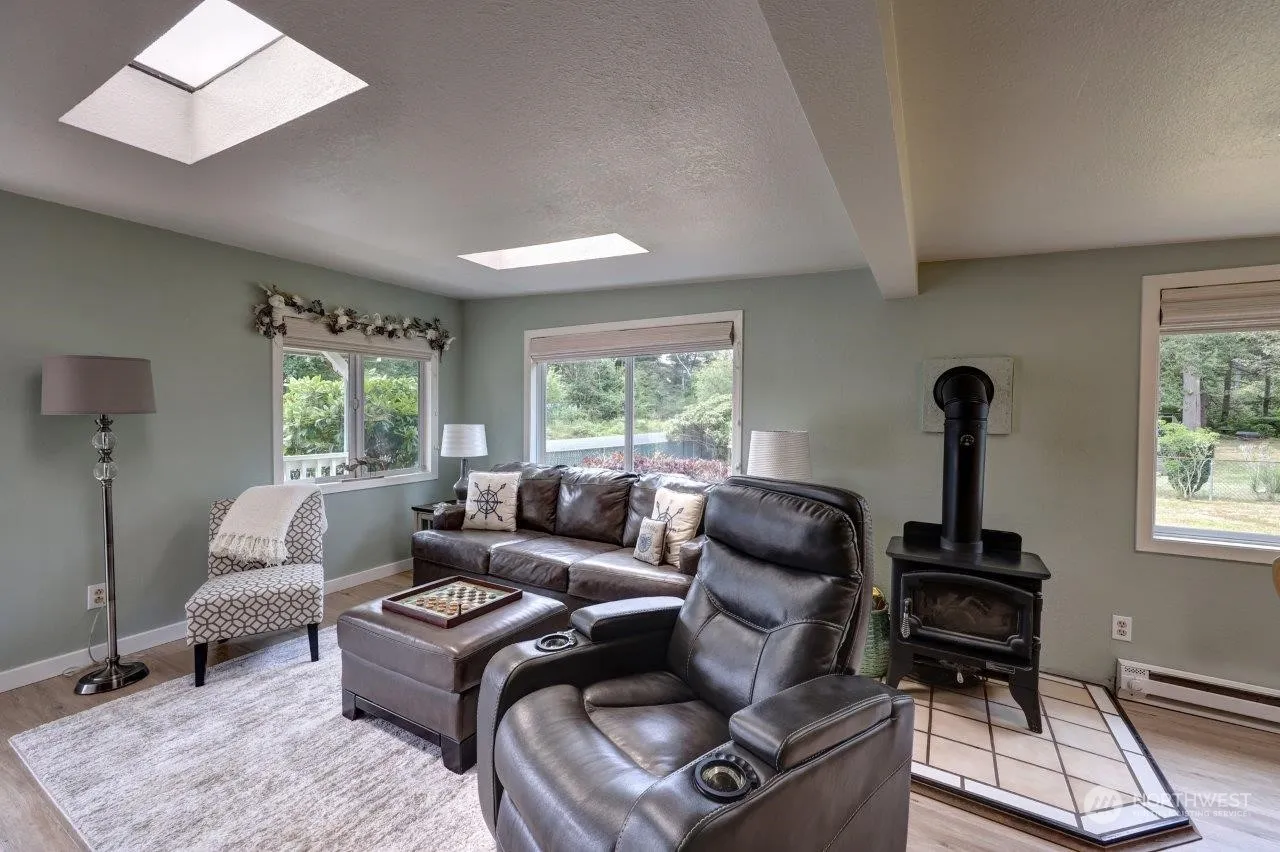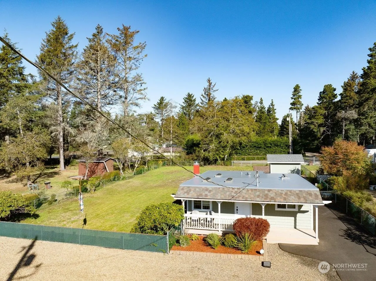 Drive up to your new home, covered porch, & enter through your front door to a remodeled 2 bedroom cutie! Newer kitchen w/stainless steel appliances & nice size dining area. Newer floor coverings in the home. Large utility room w/lots of storage. Cozy woodstove for cool evenings. Skylights & larger windows bring the outside in, home bright & cheerful. Larger trex deck in the back, outbuilding, w/storage or a little work area to putter in. Two lots, 85’x 132′, partially fenced, room for your RV company w/the property running from one street to the other, or build a garage. Bonus of a brand new roof & a newer septic system. Or just go over the hill & there is the Mighty Pacific Ocean. Long Beach Peninsula has lots to offer for all.