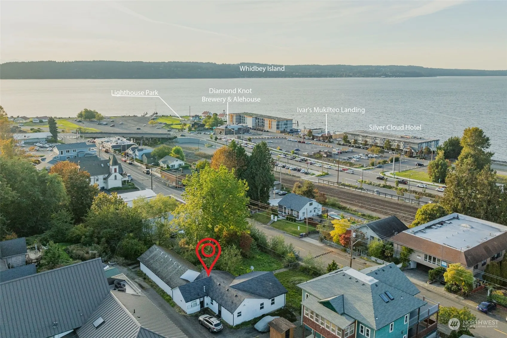 Prime Mukilteo view property (zoned mixed use) in downtown area. Location, views, and zoning make this a one of a kind property with unlimited possibilities. NOW is the time to make offers while the buyer can change the development format. Owner is in the process of permitting the 14-unit concept, primarily to optimize the site density. Anything less is most certainly reasonable. Renderings for 14-unit apt, condo building w/ structured parking, commercial space, or 8 townhomes to show possibilities. Value is in land, the 2,442sf structure is accessible by request only. (Buyer to verify and complete due diligence)