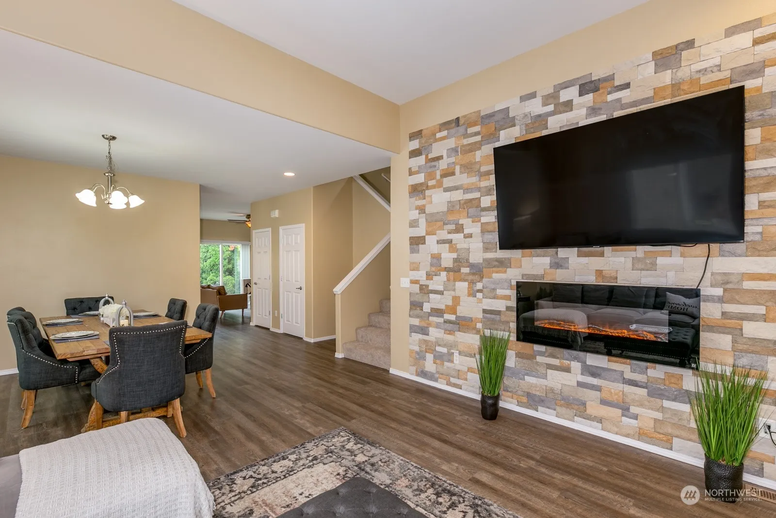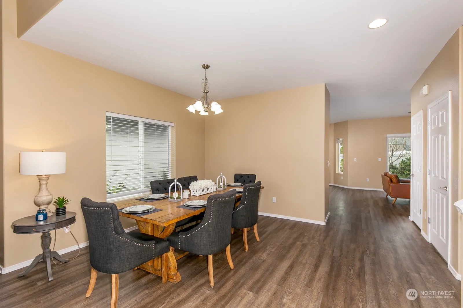 Welcome Home to Wild Horse at Woods Creek! This home features the 4th bedroom on the main floor with a main floor full bathroom! This home offers 2,446sf of living space with soaring 9’ ceilings on the main and upper floors. The other 3 bdrms & 2 full bathrms are upstairs with the primary suite featuring a 5-piece bathrm & walk-in closet. This home offers generous bedrms & spacious living room w/electric fireplace, dining room, kitchen w/breakfast room open to a family room w/gas fireplace. 3-car garage & level fully fenced backyard complete with an entertainment size patio ready to enjoy. Brand new paint & carpet complete this lovingly cared for home. Don’t miss this highly sought after floorplan in the desirable Wild Horse community!